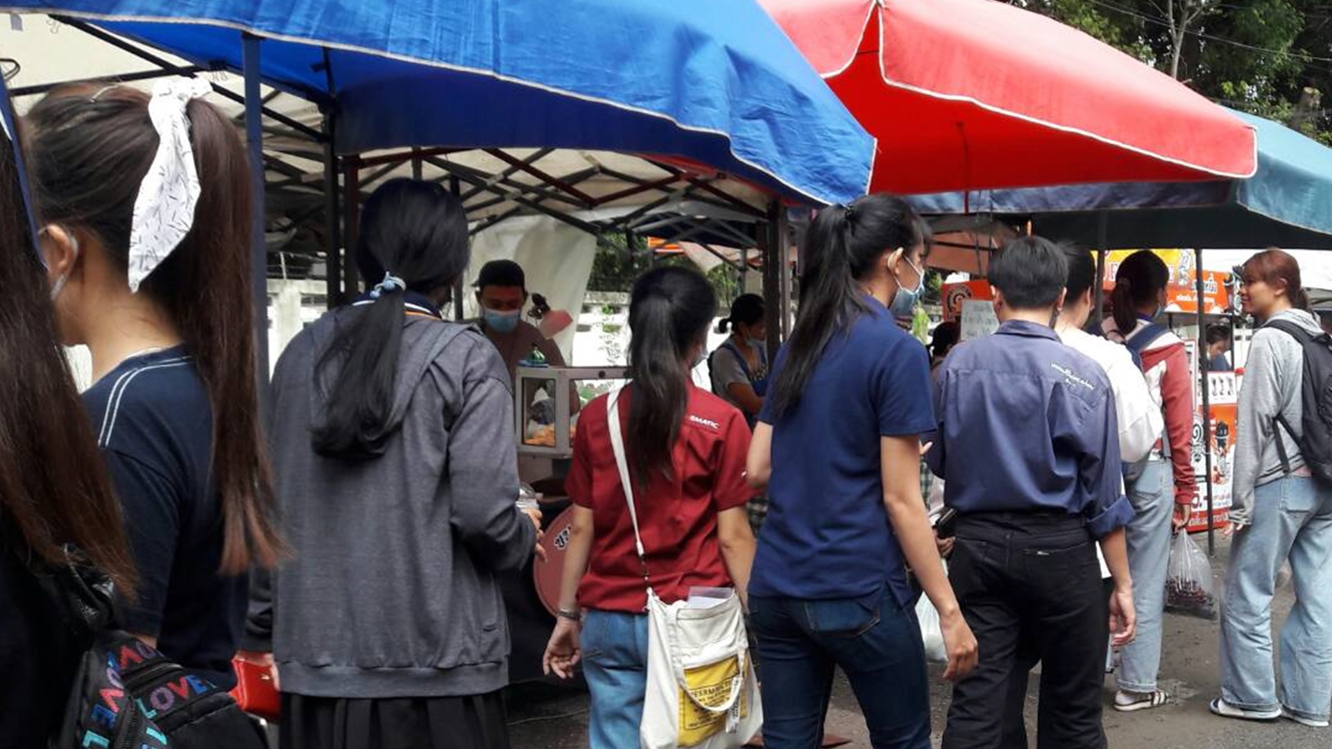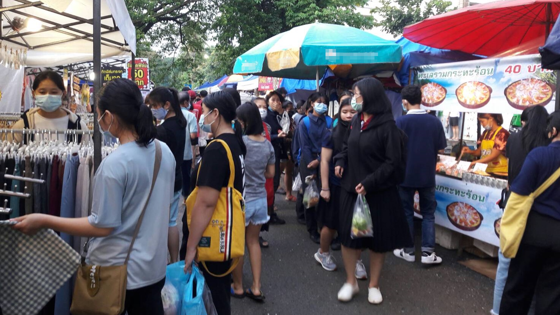 “ผู้คนจะหนาแน่นช่วงเลิกงาน จะสวมใส่หน้ากากอนามัยป้องกันโรคโควิด-19 กัน ขนาดฝนตกเป็นระยะ ๆ วันพุธนี้ ผู้ค้าต่างยิ้มแก้มปริ เพราะขายของดีกันทั้งนั้น ยิ่งบรรดาน้อง ๆ นักศึกษาใหม่ จ่ายกันสนุก หิ้วข้าวของพะรุงพะรัง จะมีช่วงที่น้อง ๆ นักศึกษาใหม่ เข้าร่วมกิจกรรม ถ้านัดไหนเจอช่วงนั้นอาจจะเงียบไปบ้าง แต่ก็มีบุคลากร มีชาวบ้านที่เลิกงาน แวะเวียนมาเดินซื้อข้าวของกัน ประกอบกับเป็นช่วงใกล้รับปริญญาด้วย รุ่นพี่ ก็อาจจะเลือกซื้อของฝาก เตรียมมอบให้บัณฑิตใหม่ กาดนัดคาวบอยก็เลยเนืองแน่นด้วยผู้คนอย่างที่เห็น”