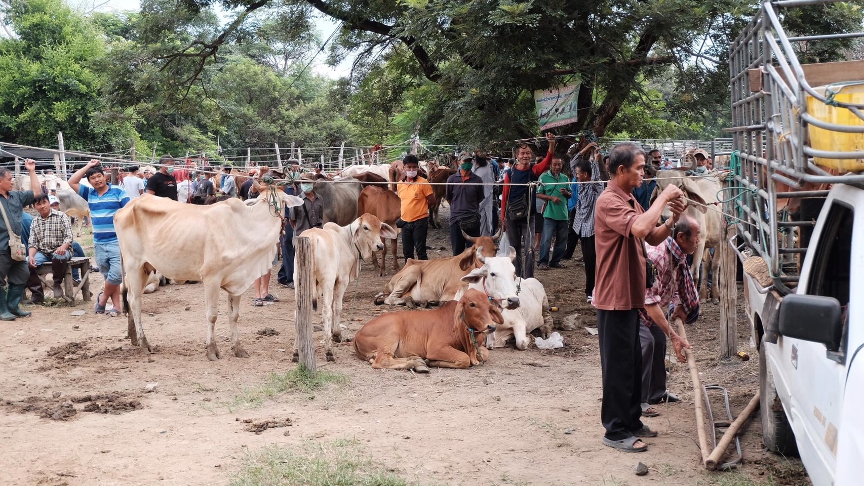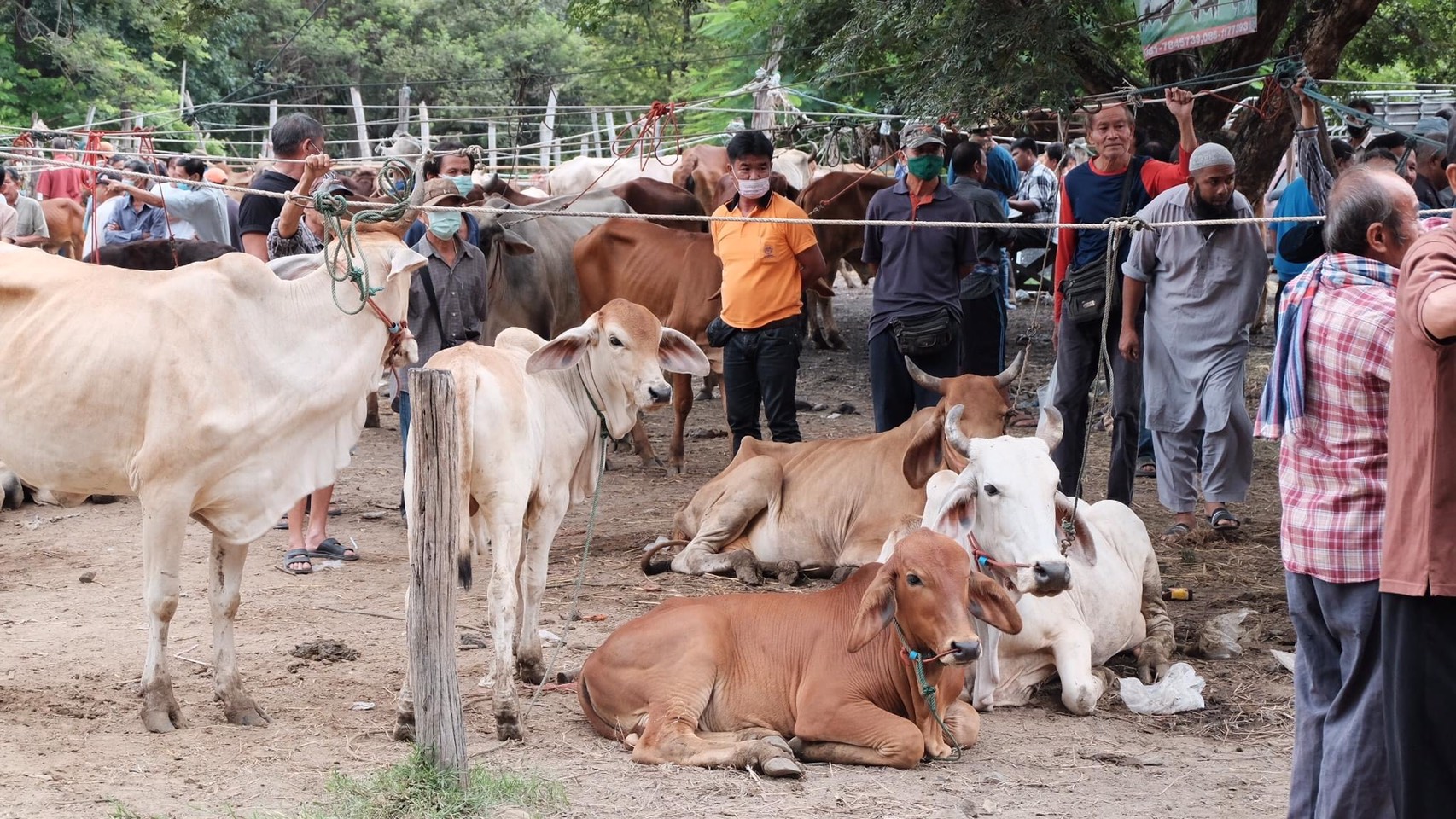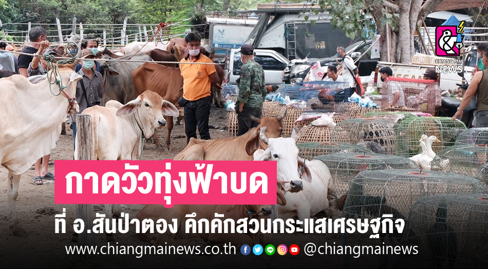เมื่อวันที่ 10 ต.ค. 2563 ที่กาดวัวทุ่งฟ้าบด ตั้งอยู่สองฟากฝั่งถนนสายเชียงใหม่-ฮอด อ.สันป่าตอง จ.เชียงใหม่ เป็นตลาดนัดประจำวันเสาร์ อันเก่าแก่ที่เปิดมานานหลายสิบปี ไม่เป็นเพียงตลาดซื้อขายวัว-ควาย แห่งใหญ่ของภาคเหนือเท่านั้น ยังมีสินค้าน่าสนใจอยู่หลายหลากชนิดครบวงจร ทั้งเครื่องอุปโภค-บริโภค อย่างครบครันในตลาดแห่งนี้