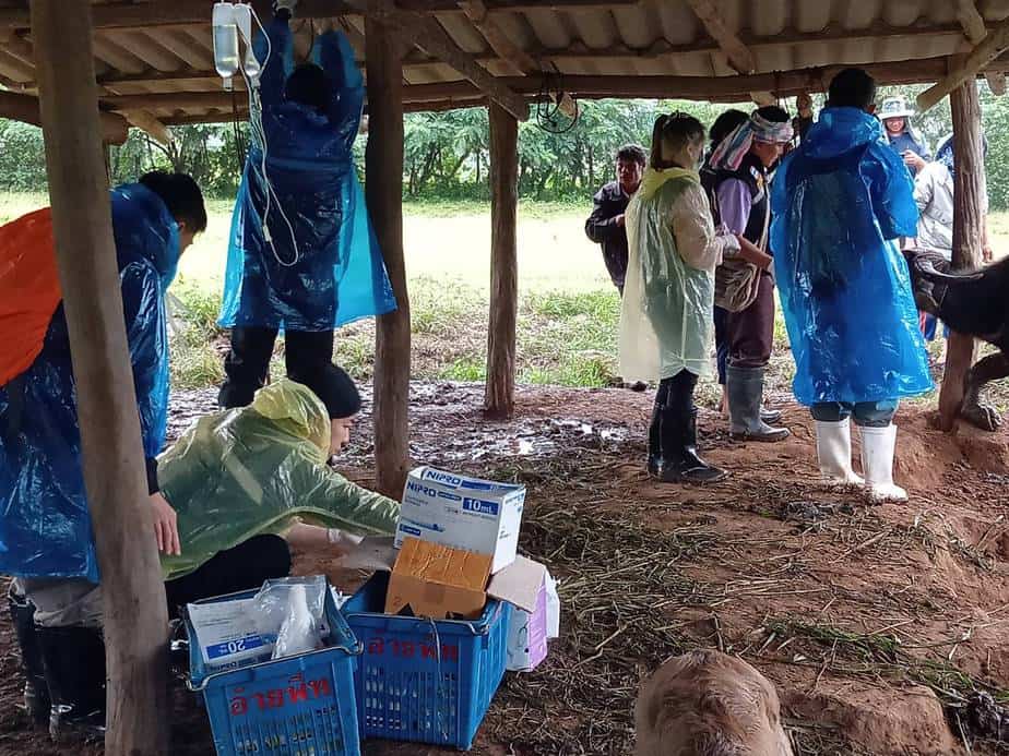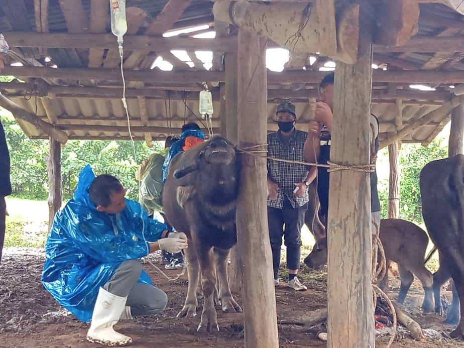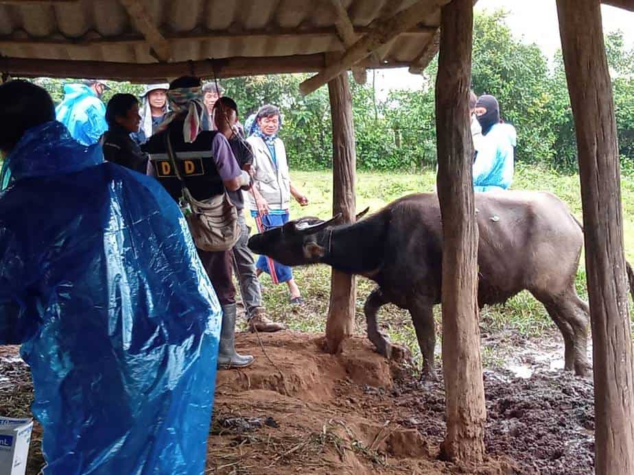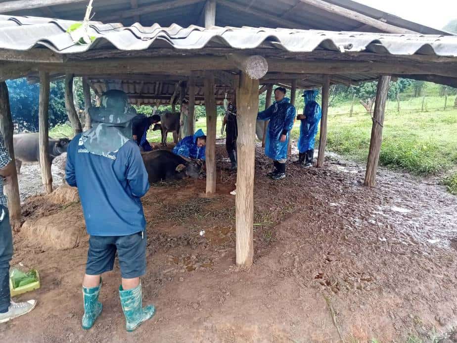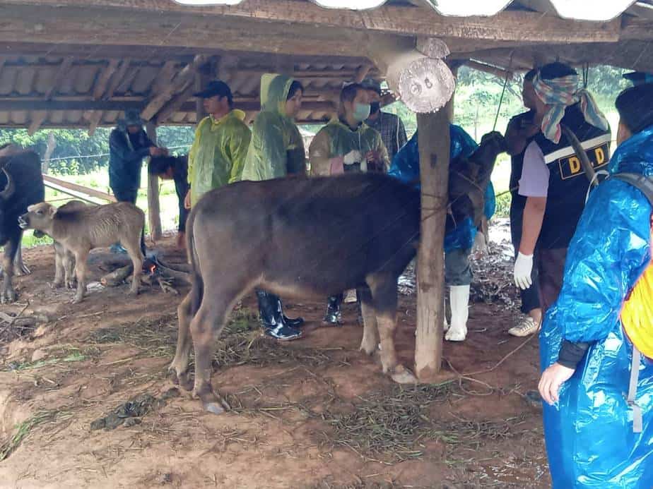 ซึ่งเมื่อเช้าวันนี้ (20 ต.ค. 2563)ได้มอบหมายให้เจ้าหน้าที่ฯ ทต.บ่อหลวง ร่วมกับ เจ้าหน้าที่ปศุสัตว์ สำนักงานปศุสัตว์ จ.เชียงใหม่, เจ้าหน้าที่ปศุสัตว์ อ.ฮอด, ผู้ใหญ่บ้านแม่ลายใต้ และนายสิงห์ทอง ดีคำ สท.บ่อหลวง เดินทางไปยังบ้านของนายโน๊ะ พบว่ามีควายเหลือเพียง 12 ตัว จาก 22 ตัว อยู่ในอาการป่วยหนัก ทางเจ้าหน้าที่ปศุสัตว์ฯ ได้ทำการพ่นยาฆ่าเชื้อโรค และฉีดยาให้กับควายที่กำลังป่วยหนัก พร้อมกันนี้ได้นำชิ้นเนื้อของควายที่เสียชีวิต ไปทำการตรวจว่ามาจากเชื้อโรคชนิดใด