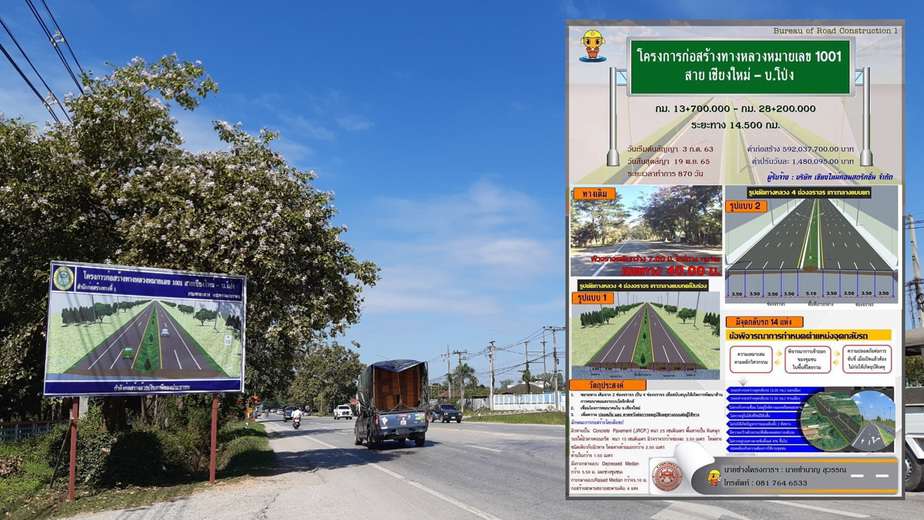 ล่าสุดจากการติดตามสอบถามรายละเอียดหน่วยงานที่เกี่ยวข้อง มีรายงานว่า โครงการก่อสร้างขยายถนนจาก 2 ช่องทาง เป็น 4 ช่องทาง สายเชียงใหม่-บ้านโปง (พร้าว ) ช่วงกม.13+700-28+200 ระยะทางประมาณ 14.5 กม. ซึ่งลงนามในสัญญาจ้างที่ สท.1 /3/63 เมื่อวันที่ 2 ก.ค.2563 กับ บ.เชียงใหม่คอนสตรัคชั่น จก. วงเงินกว่า 592 ล้านบาท สัญญาจ้างระหว่าง 3 ก.ค.2563-19 พ.ย.2565 ระยะเวลา 870 วัน ติดปัญหาเรื่องต้นไม้หวงห้าม และระบบสาธารณูปโภค ไฟฟ้า ประปา สายสื่อสารที่ต้องรอให้หน่วยเกี่ยวข้องเข้ามาดำเนินการ “รูปแบบถนนจะขยายจากเดิม 2เลน เป็น 4 เลน ผิวจราจรกว้าง 7 ม. กว้างช่องละ 3.5 ม. มีเกาะกลาง กว้าง 5.1 ม. ตลอดสายทาง มีจุดกลับรถ 14 แห่ง เช่น กม.14+150 บริเวณก่อนถึงรร.บ้านป่าบง, กม.15+100 หน้าหมู่บ้านเอื้ออาทร เป็นต้น ซึ่งตลอดสายทางจะ หลีกเลี่ยงการเปิดจุดเปิดเกาะบริเวณทางโค้งเพื่อความปลอดภัย”