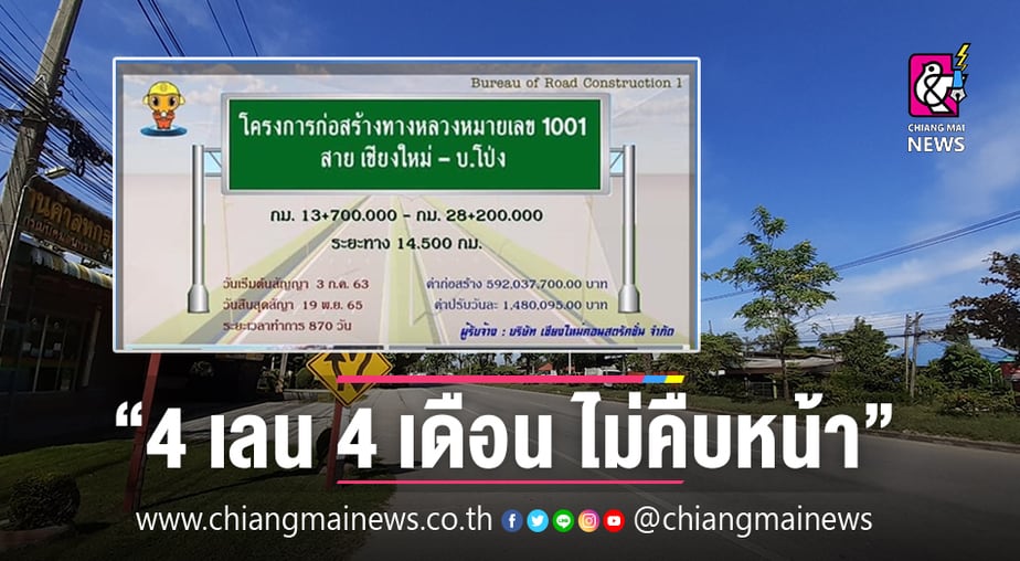 ก่อสร้างทางหลวง 1001 สายเชียงใหม่-บ.โป่งหรือสายแม่โจ้ไปพร้าวนั้น ปรากฎว่าตั้งแต่ลงนามในสัญญาจ้างล่วงเลยมากว่า 4 เดือน ยังไม่มีความคืบหน้าใด ๆ เลยมีเพียงติดป้ายประกาศแจ้งรายละเอียดโครงการ และ สร้างสำนักงานโครงการข้าง ๆ รร.สันทราย วิงวอนสื่อท้องถิ่นติดตามทวงถามความก้าวหน้าแผนงาน