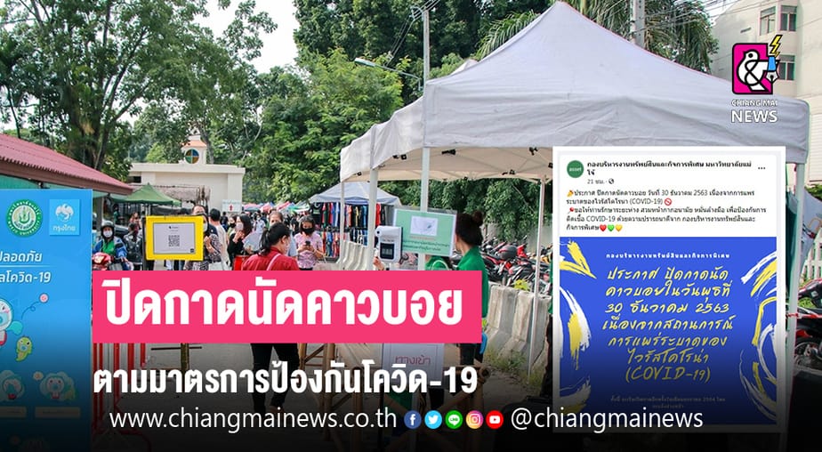 กองบริหารงานทรัพย์สินและกิจการพิเศษมหาวิทยาลัยแม่โจ้ ได้ประกาศแจ้ง การปิดกาดนัดคาวบอย ในวันที่ 30 ธ.ค.นี้ เนื่องจากการแพร่ระบาดของไวรัสโคโรน่า (โควิด-19) โดยจะแจ้งรายละเอียดการปิดกาดนัด ซึ่งจัดทุกวันพุธ อีกครั้งในช่วง มกราคมปีหน้า