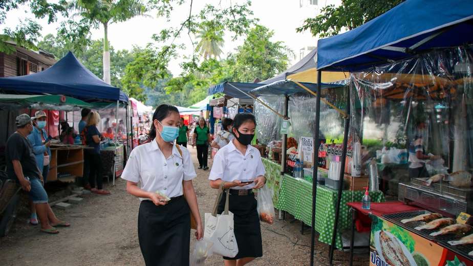 การขอความร่วมมือ ผู้ค้า ผู้ซื้อให้สวมหน้ากากอนามัย ส่วนใหญ่ ให้ความร่วมมือ ตามมาตรการทางสาธารณสุขกัน แต่ละคนกังวลกลัวติดเชื้อทั้งนั้น แต่ที่น่าห่วงคือ ผู้ปกครองส่วนหนึ่ง มักจะไม่ค่อยสวมหน้ากากอนามัยให้เด็กๆ