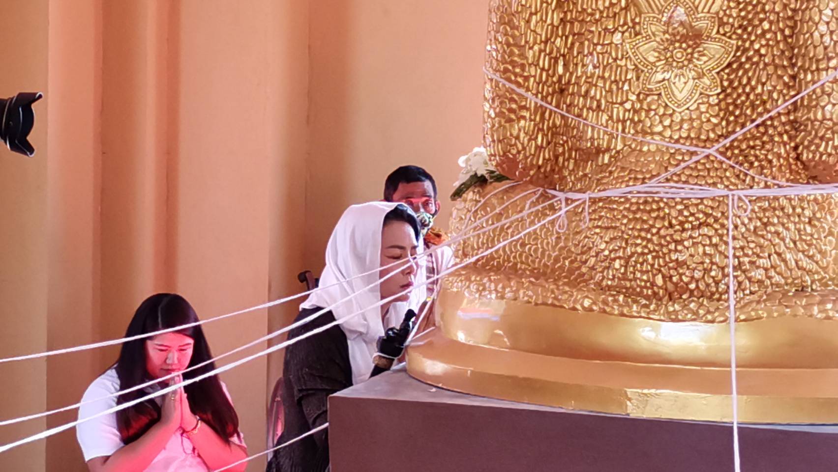 ทางด้านหมอแก้มหอมฯ กล่าวว่า ทางอโรคยา เดอสารภี ได้จัดสร้าง “องค์พระมหามัยมุนีจำลอง” ขึ้น หรือที่เรารู้จักกันว่า ‘พระพุทธรูปที่มีชีวิต’ เพราะว่ามีตำนานกล่าวว่าพระพุทธเจ้าได้ประทานลมหายใจไว้ให้ พระพุทธรูปที่มีชีวิตองค์นี้ ซึ่ง องค์พระมหามัยมุนี มีลักษณะเป็นพระพุทธรูปทรงเครื่องสวมมงกุฎยอดแหลม มีสังวาลย์รูปกากบาทประดับทับทรวงตรงกลาง และพระพุทธรูปองค์นี้ จะต้องมีพิธีล้างพระพักตร์พระมหามัยมุนี โดยจัดขึ้นในทุกๆ เช้า เสมือนว่าพระพุทธรูปองค์นี้ตื่นจากบรรทม โดยพิธีนี้จะเริ่มในราวตี 4 ของทุกวัน แต่เนื่องจากสถานะการณ์ในตอนนี้ เกี่ยวกับการระบาดของโควิด -19 ทำให้เราๆ ท่านๆ ไม่สามารถเดินทางไปสักการะได้ ทางอโรคยา เดอสารภี จึงได้บรวงสรวงและจัดทำองค์ “พระมหามัยมุนีจำลอง” นี้ขึ้นเพื่อเป็นที่ยึดเหนี่ยวทางด้านจิตใจของผู้ป่วยและพุทธศาสนิกชนทุกท่าน ที่สามารถเดินทางมากราบไหว้ขอพรเพื่อต่อลมหายใจและอีกอย่างนึงทางเราได้ทำทางเดินสำหรับรถเข็นของคนพิการหรือผู้ป่วยที่ไม่สามารถเดินได้ ซึ่งถือว่าเป็นที่เดียวในโลกนะคะ ที่มีรถเข็นสามารถเข้าไปปิดทองได้ทั้งผู้หญิงและผู้ชาย โดยรอบๆ หอพระมหามัยมุนีจำลอง” จะมีสวนดอกไม้พร้อมทางเดินไว้ให้ได้เป็นที่พักผ่อนจิตใจและออกกำลังกายอีกด้วย