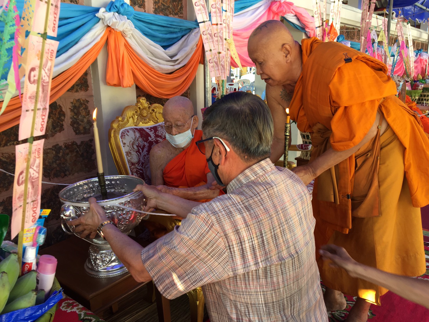พิธีสงฆ์ประกอบพิธีสูตรจำเริญพระพุทธมนต์มหามังก๊ะละ งานการทำบุญฉลองสมโภชหอธรรมกลางน้ำ อายุครบ 142 ปีดังกล่าว เพื่ออุทิศส่วนกุศลนี้ไปรอดจอดเถิงจิตตะดวงวิญญาณ ตานให้ครูบาเจ้ากันธา, ตานให้ครูบาเจ้าสิธิ, ตานให้ครูบาเจ้าพิมพิสาร, ตานให้ครูบาเจ้าสุวรรณ, ตานให้ครูบาเจ้ายานะ, ตานให้ครูบาเจ้าอริยะ (ครูบาอินถา อริโย) อดีตเจ้าคณะ ต.บ้านแหวน, พระครูประโชติบุญรักษ์ (ครูบาจันทร์ จิรฏฺฐิโก) อดีตเจ้าคณะ ต.บ้านแหวน, พอท้าวบุญเรือง ผู้สร้างวัด และเสื้อวัดเสื้อวา เทวดาอารักษ์ ผู้รักษาวัดท้าวบุญเรืองทุกๆองค์