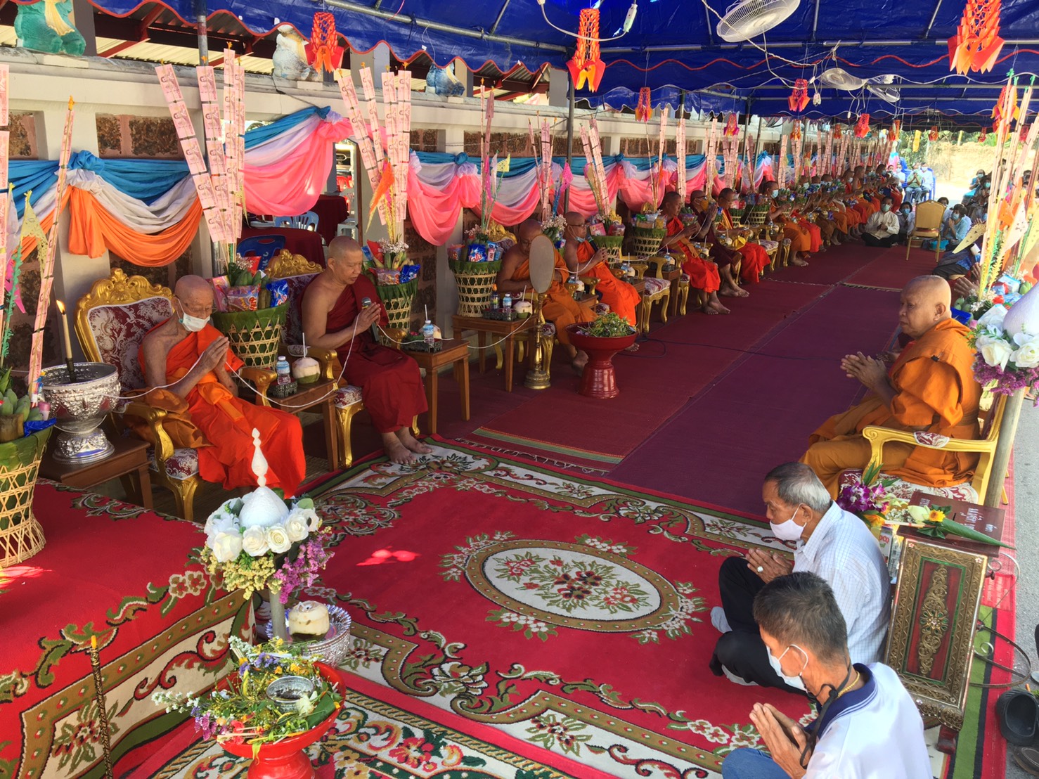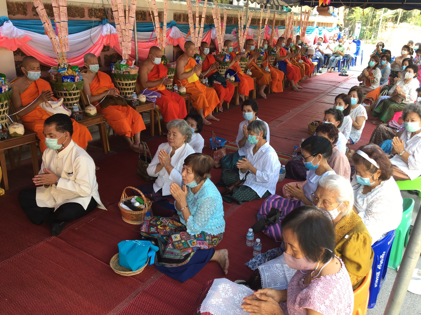 เสร็จสิ้นพิธีสงฆ์ ถวายเพลแด่พระสงฆ์ จากนั้นศรัทธาประชาชนในหมู่บ้านบ้านท้าวบุญเรือง ต.บ้านแหวน อ.หางดง ได้ตั้งโรงทานแจกอาหาร น้ำดื่ม น้ำหวาน ขนมหวาน และผลไม้ไม้นานาชนิด ให้ศรัทธาประชาชนที่มีจิตกุศลที่เดินทางมาร่วมทำบุญ ได้รับประทานอาหารพร้อมกัน เป็นอันเสร็จสิ้นพิธี
