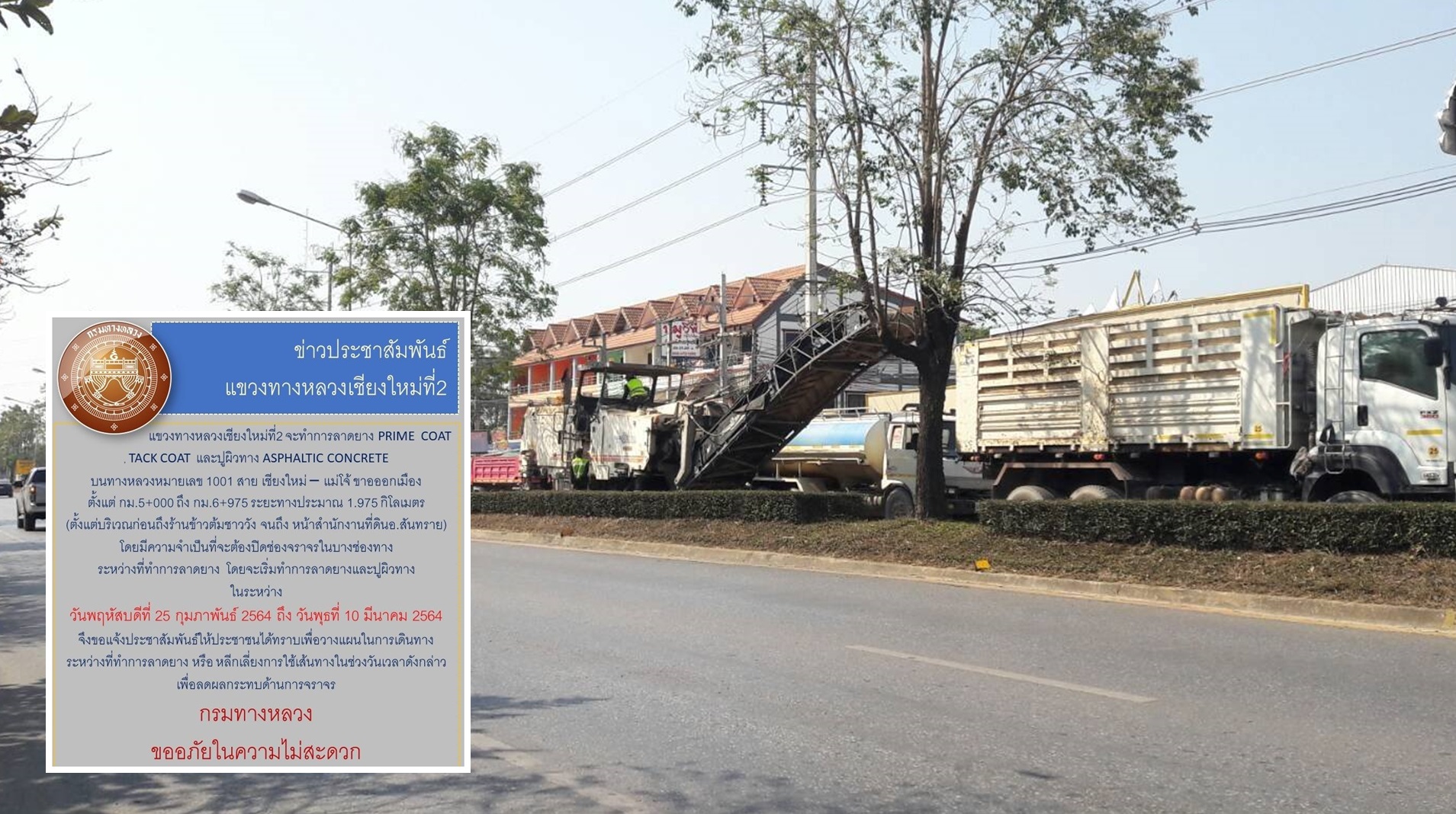 ทางหลวงเพื่อเพิ่มประสิทธิภาพการจราจรและขนส่ง ทางหลวง 1001 ตอนควบคุม เชียงใหม่ -บ้านโป่ง กม.2+070-กม.3+883 ระยะทาง 1.813 กม. วงเงิน 40 ล้านบาทสืบเนื่องจากทางหลวง 1001 ตอนเชียงใหม่-บ้านโป่ง (สายเชียงใหม่-พร้าว) เป็นเส้นทางหลักเชื่อมต่อจากเมืองเชียงใหม่ออกไปอำเภอพร้าว รวมทั้งสถานที่ท่องเที่ยวต่าง ๆ บริเวณช่วง กม.2-3+940 ต.หนองจ๊อม อ.สันทราย ระยะทางประมาณ 1.940 กม. เป็นอีกช่วงที่มีปริมาณการจราจรสูงมาก ทำให้การจราจรติดขัด