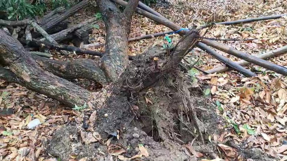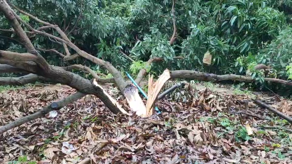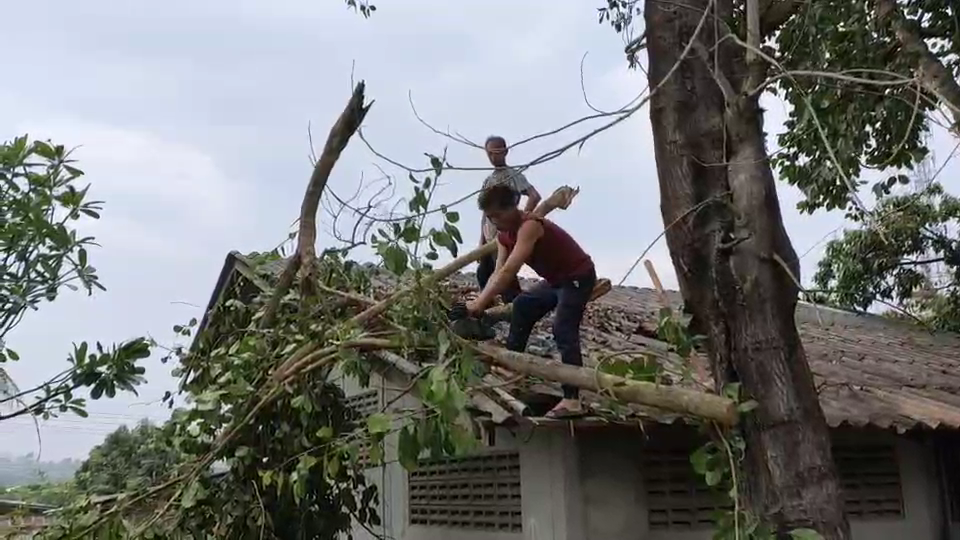 ชาวบ้านข่วงเปาใต้บันทึกภาพเหตุการณ์ขณะที่พายุฝนพัดกระหน่ำในพื้นที่อย่างรุนแรง ทำให้ต้นลำไยภายในสวนถูกลมพัดจนเอนไปมาและมีกิ่งไม้พัดปลิวไปกับแรงลม หลังจากหลบฝนในฮ่างกลางสวนลำไย เนื่องจากกลัวถูกฟ้าผ่า ขณะกำลังรดน้ำต้นลำไยภายในสวนลำไย โดยเหตุการณ์ดังกล่าวเกิดขึ้นนานกว่าครึ่งชั่วโมง ก่อนที่ฝนจะกระหน่ำลงมานานนับชั่วโมง ซึ่งเหตุการณ์ดังกล่าวเกิดขึ้นประมาณ 16.00 น. ที่ผ่านมา หลังเกิดเหตุพบว่าต้นลำไยภาพในสวนที่กำลังติดช่อดอกถูกลมพายุดพัดจนล้มลงทั้งต้นนับ 10 กว่าต้น ส่วนชาวบ้านในหมู่บ้านครอบครัวอื่นต่างสำรวจความเสียหายบ้านเรือนของตนพบว่าหลังคาถูกลมพัดปลิวไปกับพายุฝน บ้านบางหลังถูกกิ่งไม้ขนาดใหญ่พัดปลิวถูกหลังคา แตกกระจาย