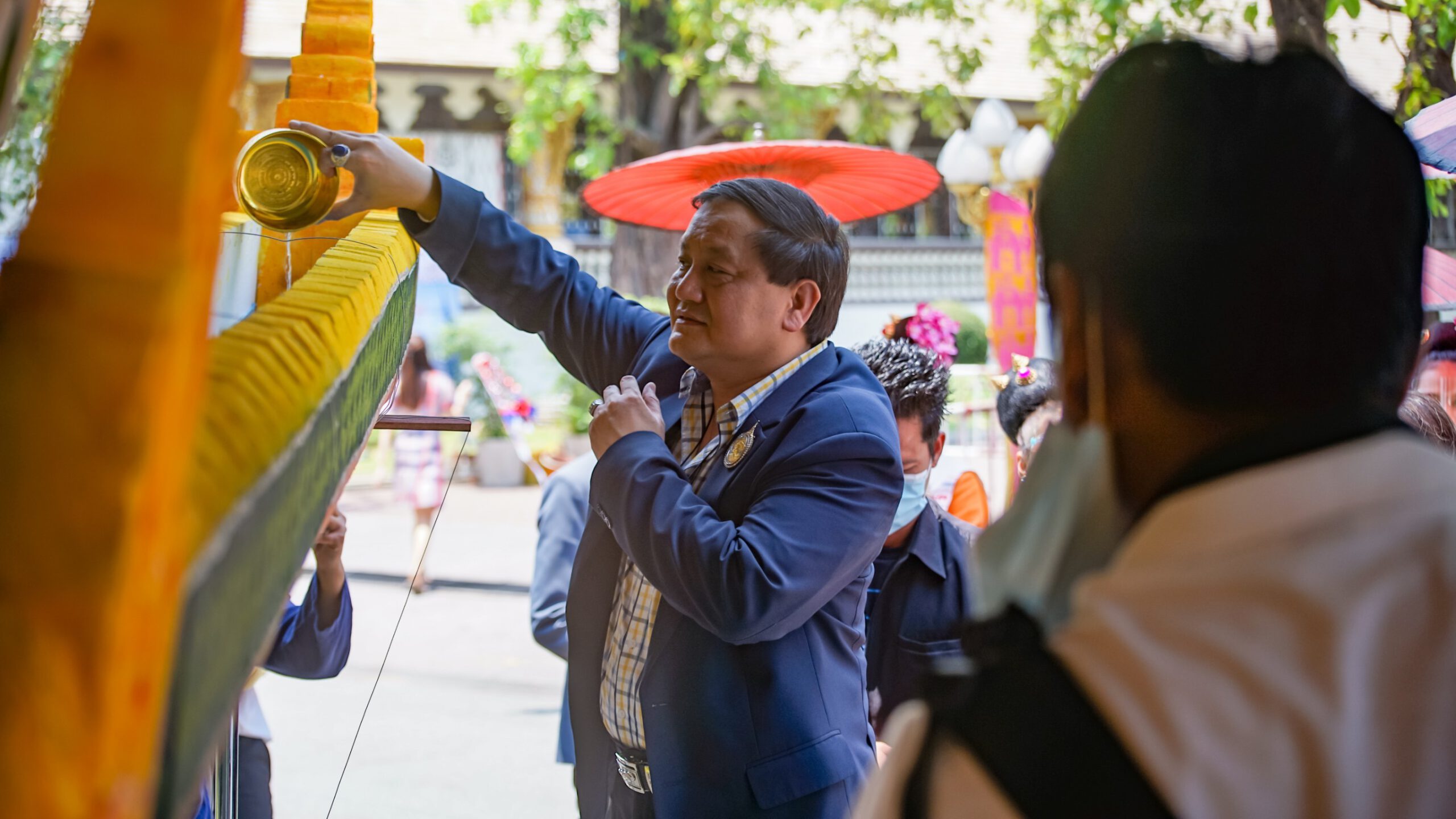 ประธานคณะปวงชนชาวไทยเพื่อชาติ ศาสน์ กษัตริย์ พาครอบครัว อดีตรองผู้บัญชาการทหารสูงสุด เข้าร่วมพิธีสืบชะตาหลวงแบบล้านนา วัดสวนดอกเชียงใหม่ พร้อมถวายเงิน 5 แสนบาท เพื่อซ่อมแซมพระธาตุเจดีย์ที่ประสบวาตภัย แผ่นทองจังโก๋หลุดลงมาทั้งแถบ