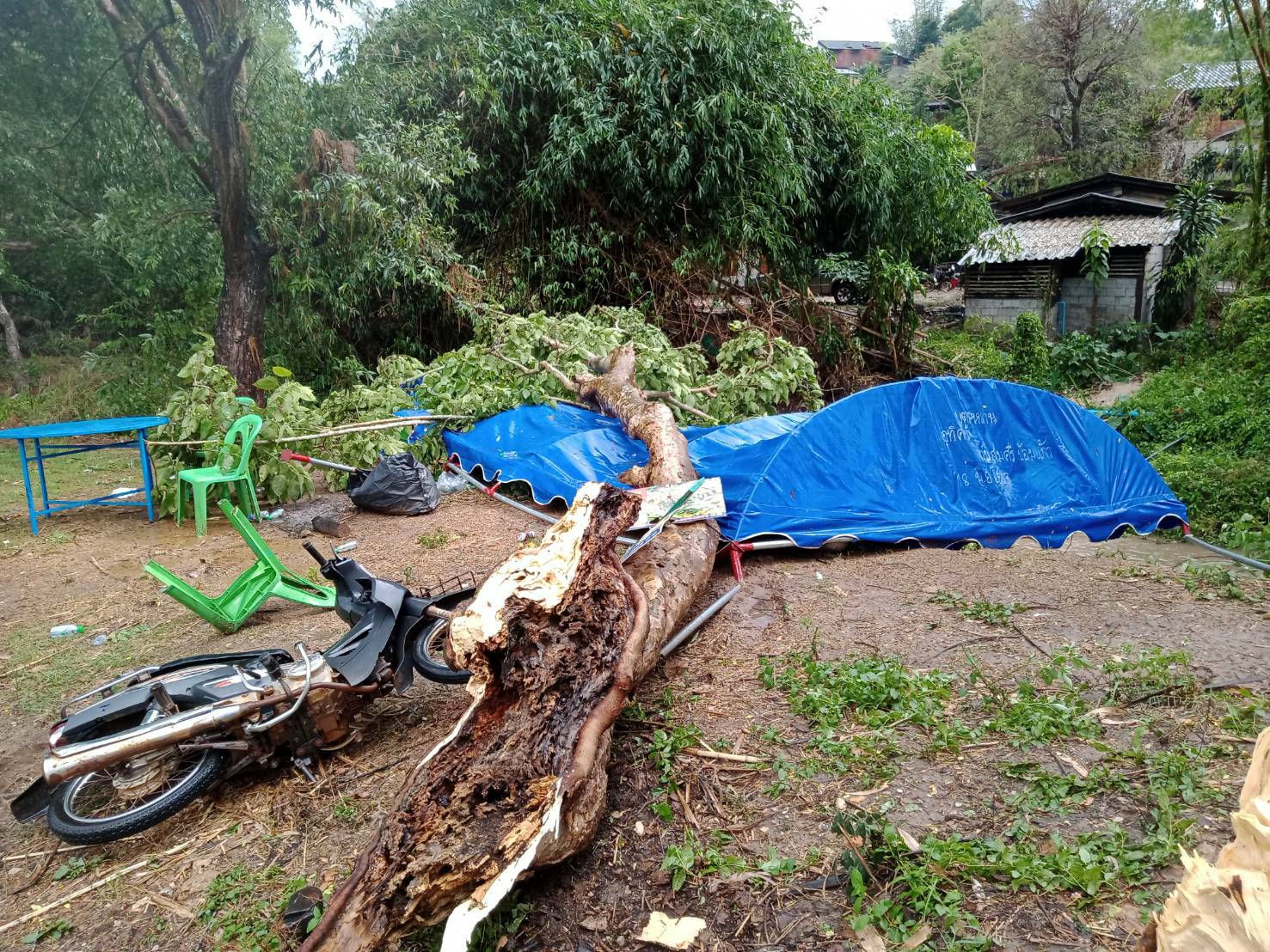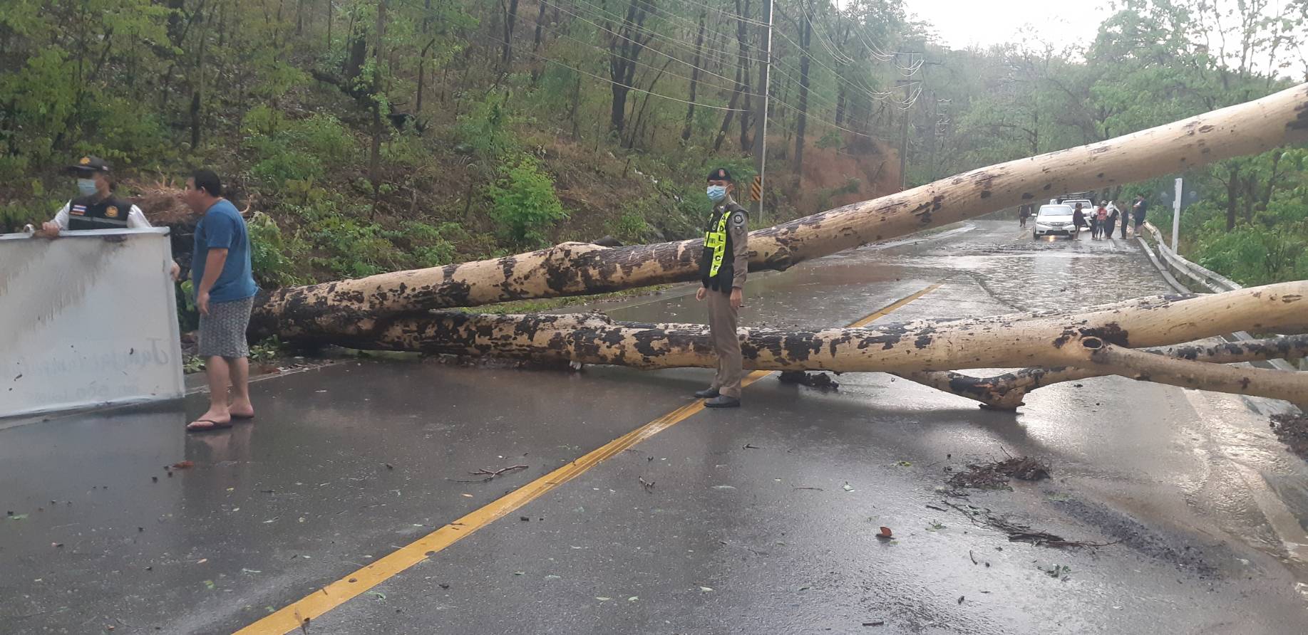 ด้าน อำเภอฮอด รายงานว่า วันนี้ 14 เมษายน 64 เวลา 17.00 น. เกิดพายุฤดูร้อนในพื้นที่ บ้านเรือนราษฎรได้รับความเสียหายแก่บ้าน เสาไฟฟ้าในหมู่บ้านล้ม หลังคาบ้านซึ่งมุงด้วยกระเบื้องเสียหายเป็นจำนวนมาก ขณะนี้องค์กรปกครองส่วนท้องถิ่น กำนัน ผู้ใหญ่บ้านฯ ในพื้นที่ เร่งเข้าดำเนินการสำรวจความเสียหาย และให้การช่วยเหลือเบื้องต้นแล้ว นอกจากนี้มีรายงานอีกว่า ในเวลา 17.30 น. ได้รับแจ้งมีต้นไม้ล้มขวางทางถนน 108 เส้นทางฮอด – แม่สะเรียง กิโลเมตรที่ 93-94 ซึ่งหมวดการทางท่าข้าม ร่วมกับเทศบาลตำบลท่าข้าม ได้ช่วยกันตัดต้นไม้ที่ขวางทางถนน เพื่อให้ประชาชนได้สัญจรเส้นทางเดินรถตามปกติแล้ว โดยมีตำรวจทางหลวงอำนวยความสะดวกจราจร