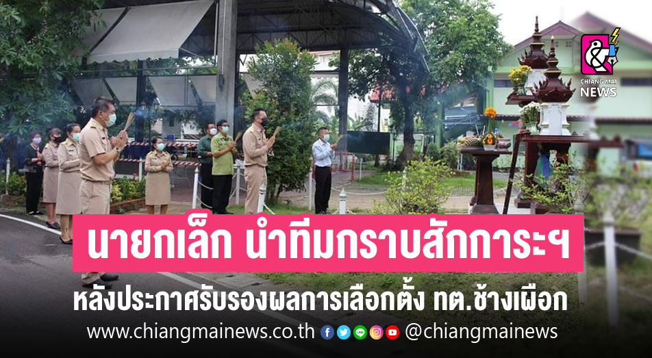 นายก ทต.ช้างเผือก อ.เมือง จ.เชียงใหม่ พร้อมทีมงาน เข้ากราบสักการะพระสถูปเจดีย์อนุสาวรีย์สมเด็จพระเจ้าติโลกราช พระเจ้าทันใจ ณ วัดเจ็ดยอดพระอารามหลวง และศาลพระภูมิเจ้าที่ประจำ ทต.ช้างเผือก เพื่อความเป็นสิริมงคล หลังจากที่คณะกรรมการการเลือกตั้ง ได้ประกาศรับรองผลการเลือกตั้ง เมื่อวันที่ 27 เมษายน ที่ผ่านมา