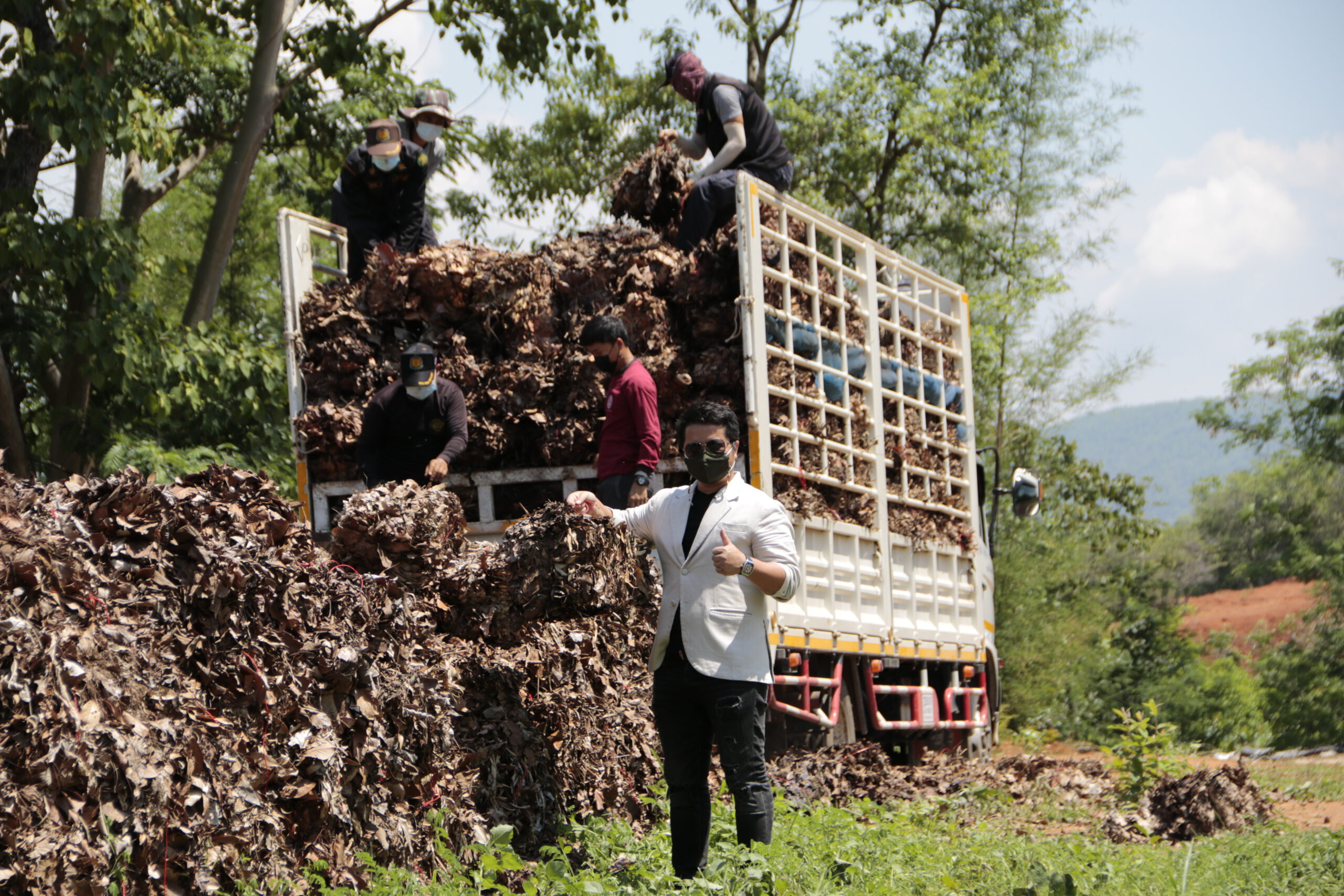 ด้าน นายนาวิน ชัยสิทธิ์ ฝ่ายประสานงาน บริษัท วีอีโค จำกัด กล่าวว่า การรับซื้อใบไม้แห้งอัดก้อนของชาวบ้านวันนี้ ได้เลื่อนมาจากที่กำหนดไว้ว่าจะมารับซื้อเดือนมกราคม-กุมภาพันธ์ 2564 ที่ผ่านมา แต่ประสบปัญหาโรคโควิด-19 ระบาด อย่างไรก็ตามปัญหาหมอกควันไฟป่า ช่วง 10-20 ที่ผ่านมา ทางบริษัทฯจึงต้องการเป็นส่วนหนึ่งในการร่วมป้องกันและแก้ไขปัญหาหมอกควันไฟป่า และการเผาเศษของพืชเชิงเดี่ยว จึงมีแนวคิดนำใบไม้แห้งไปแปรรูปผ่านกระบวนการเปลี่ยนเชื้อเพลิงใบไม้แห้งเป็นผลิตภัณฑ์ปลอดภัยและเป็นมิตรกับสิ่งแวดล้อม มุ่งเป้าหมายในการจัดการและลดปริมาณเชื้อเพลิงใบไม้แห้งที่มีจำนวนมากในพื้นที่ป่า จึงรับซื้อใบไม้แห้งอัดก้อนของชาวบ้าน ปีที่แล้วรับซื้อนำรอง จ.แม่ฮ่องสอน 103 ตัน ปีนี้ตั้งเป่าจะรับซื้อ 400 ตัน (หรือ 4 แสนกิโลกรัม) แบ่งเป็นแม่ฮ่องสอน 200 ตัน จ.เชียงใหม่ จ.ลำพูน จ.เชียงราย รวม 200 ตัน วันนี้มารับซื้อที่ อ.แม่แจ่ม จ.เชียงใหม่ ส่งไปโรงงานที่ จ.แม่ฮ่องสอน จำนวน 20 ตัน