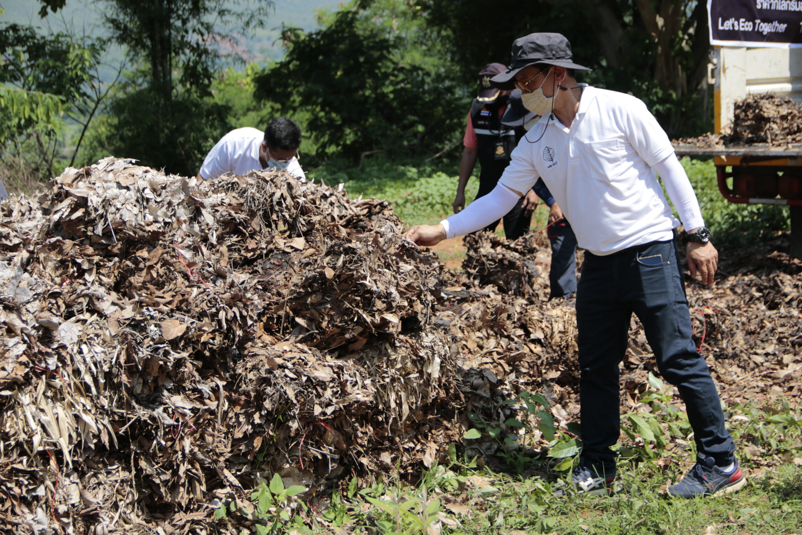 “เป็นแนวคิดที่ว่า นวัตกรรมเปลี่ยนใบไม้ให้เป็นเงิน จากนั้นนำมาแปรรูปได้เป็นวัตถุดิบ เป็นถ่านอัดแท่ง น้ำส้มควันไม้ เป็นสารสกัดจากใบไม้ เพื่อนำไปเป็นส่วนประกอบของผลิตภัณฑ์ที่ปลอดภัยเป็นมิตรกับสิ่งแวดล้อม โดยเฉพาะใบตองต้นตึง หรือใบต้นพลวง มีสารลินิน ที่มีคุณสมบัติพิเศษ จะเห็นชาวบ้านนำใบต้นพลวง ไปห่อข้าว มดจะไม่มากินข้าวเลย เป็นต้น และนำใบไม้แห้งทั้งใบตองตึงและใบไม่แห้งชนิดอื่นไปแปรรูปไปทำผลิตภัณฑ์สำหรับใช้ชีวิตประจำวันใช้ในครัวเรือน เช่น ทำน้ำยาล้างจาน ผลิตภัณฑ์ซักผ้า น้ำยาล้างห้องน้ำ และเครื่องสำอาง ครีมอาบน้ำ และทางด้านการเกษตร ทำน้ำส้มควันไม้เป็นต้น ซึ่งทั้งหมดเป็นผลิตภัณฑ์ออร์แกนิกที่ผ่านมาตรฐาน อย. และวางจำหน่ายแล้ว ดังนั้นการที่หลายภาคส่วนหากจะต้องการที่จะช่วยกันในการป้องกันและแก้ไขปัญหาหมอกควันและไฟป่า แค่ใช้ผลิตภัณฑ์จากบริษัท ชนิดใดชนิดหนึ่งก็ถือว่าเป็นการช่วยกันอนุรักษ์ป่าไม้ไปด้วยกันครับ” นายนาวิน ชัยสิทธิ์ ฝ่ายประสานงานส่วนราชการและวางแผนและพัฒนาผลิตภัณฑ์ พร้อมทีมงานของ บริษัทวี อีโค จำกัด กล่าว