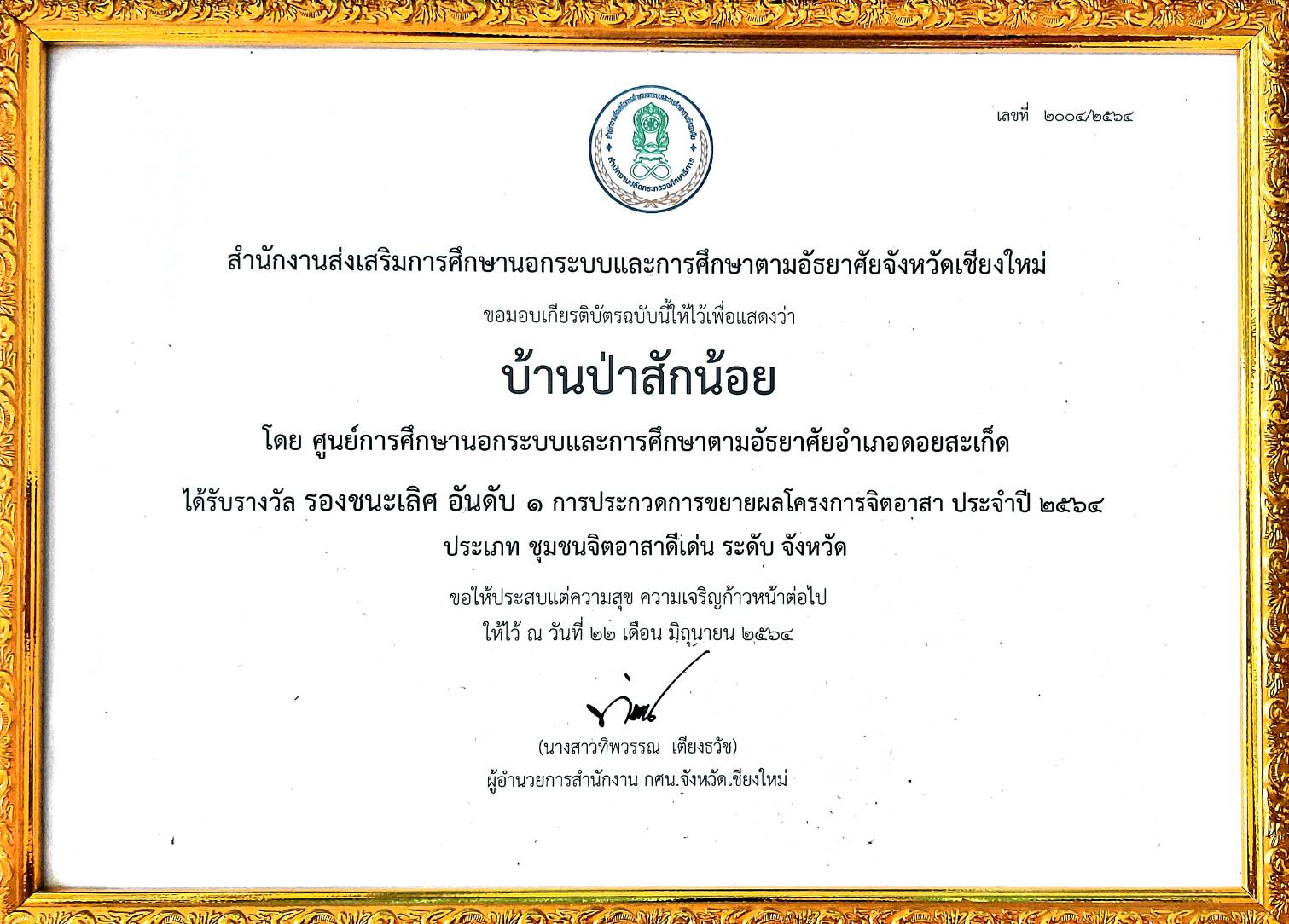 4. หมู่บ้านป่าสักน้อย ต.เชิงดอย อ.ดอยสะเก็ด ได้รับรางวัลรองชนะเลิศอันดับ 1 ตามโครงการขยายผลการประกวดขยายผล โครงการจิตอาสาประจำปี 2564 ประเภทชุมชนจิตอาสาดีเด่น ระดับจังหวัดเชียงใหม่ ในการประชุม หัวหน้าส่วนราชการ และการประชุมกำนันผู้ใหญ่บ้านอำเภอดอยสะเก็ด ผ่านระบบ Zoom Meeting ณ ที่ว่าการอำเภอดอยสะเก็ด จังหวัดเชียงใหม่
