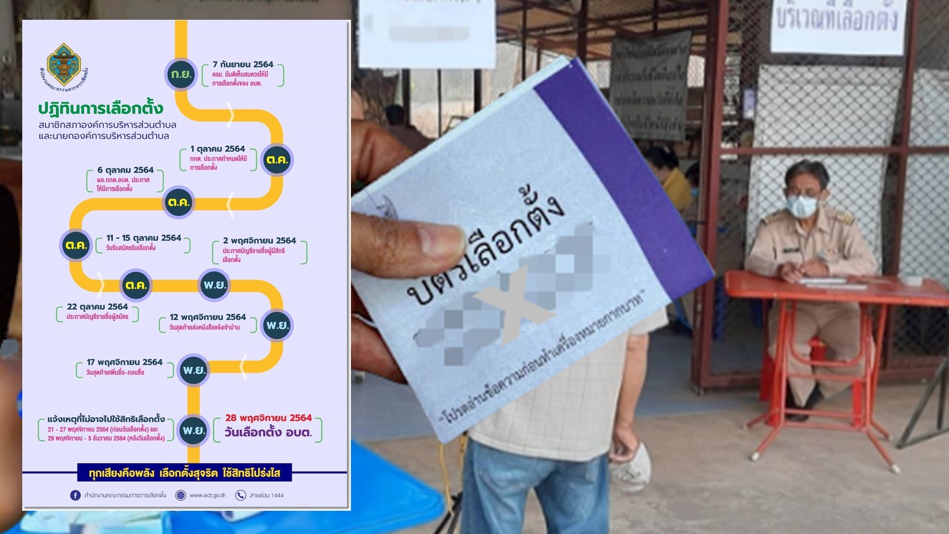 กองการเลือกตั้งท้องถิ่น กรมส่งเสริมปกครองท้องถิ่นรายงาน ไทม์ไลน์แผนงานการจัดการเลือกตั้งสมาชิกสภาองค์การบริหารส่วนตำบล (อบต.) และนายก อบต.ไปยัง องค์กรปกครองส่วนท้องถิ่น (อปท.) ว่าตามที่สำนักงานคณะกรรมการการเลือกตั้ง (กกต.) จัดทำแผนงานจัดการเลือกตั้งสมาชิก อบต.และนายก อบต.นั้น สรุปสาระสำคัญ ดังนี้ ที่ 1 ต.ค. 2564 กกต.จะประกาศกำหนดให้มีการเลือกตั้ง และเปิดรับสมัคร 11-15 ต.ค. นี้ จากนั้น 22 ต.ค. 2564 ประกาศบัญชีรายชื่อผู้สมัคร และ 2 พ.ย. 2564 ประกาศบัญชีรายชื่อผู้มีสิทธิเลือกตั้ง โดยกำหนดวันอาทิตย์ที่ 28 พ.ย. 2564 เป็นวันเลือกตั้งตั้งแต่เวลา 08.00-17.00 น. และ 28 ธ.ค. 2564 จะเป็นวันสุดท้ายประกาศผลการเลือกตั้ง