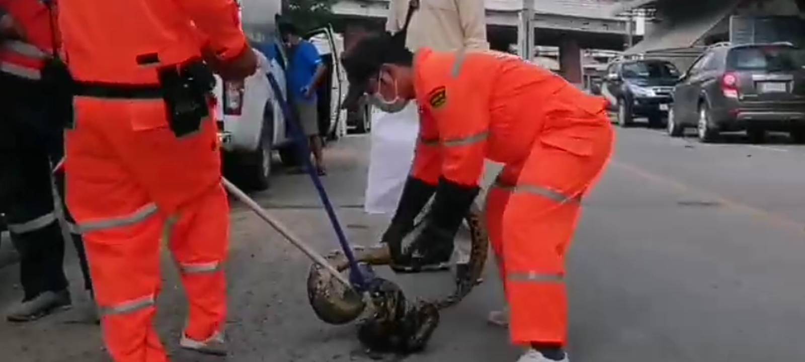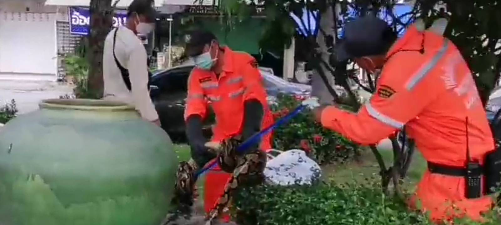 เมื่อวันที่ 30 ต.ค. 64 เจ้าหน้าที่งานป้องกันเทศบาลตำบลหนองหอย อำเภอเมือง จังหวัดเชียงใหม่ ได้รับแจ้งจากประชาชนว่าขอให้ดำเนินการจับสัตว์เลื้อยคลานขนาดใหญ่บริเวณบ่อน้ำพุ สวนสาธารณะเทศบาลฯ ตรงสี่แยกหนองหอย หมู่ที่ 6 จึงจัดเจ้าหน้าที่พร้อมอุปกรณ์รุดไปที่เกิดเหตุ
