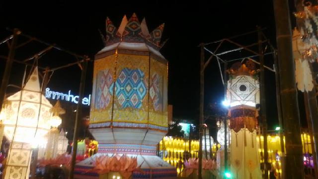 ในช่วงนี้บรรยากาศตัวเมืองเชียงใหม่ โดยเฉพาะตามประตูเมืองต่างๆ รอบคูเมืองเชียงใหม่ ขัวเหล็ก สะพานข้ามแม่น้ำปิง มีการนำโคมไฟแบบล้านนามาประดับ ไว้หลากหลายสีสันเพื่อต้อนรับ นักท่องเที่ยวเข้าสู่ประเพณียี่เป็ง จังหวัดเชียงใหม่ เพื่อต้อนรับนักท่องเที่ยว ของการเปิดเมืองอีกครั้ง ซึ่งจะจัดขึ้นระหว่างวันที่ 19-20 พ.ย.2564 นี้ ภายใต้แนวคิด “เชียงใหม่นครแห่งความสุข Chiang Mai City of Happiness” ยามค่ำคืนจะมีนัก่องเที่ยวที่เดินทางเข้ามาพากันออกไปถ่ายภาพเซลฟี่เช็คอินลงโลกโซเซียล เพื่ออวดให้กับญาติ เพื่อนๆ ซึ่งเป็นการเชิญชวนให้ใครที่กำลังคิดจะเดินทางเข้าได้มาสัมผัส ซึ่งช่วงนี้อากาศเริ่มหนาวเย็นช่วยให้บรรยากาศการท่องเที่ยว ถ่ายภาพยามค่ำคืนสุดคึกคักมาพร้อมแสงไฟจากโคมที่ประดับประดาไว้