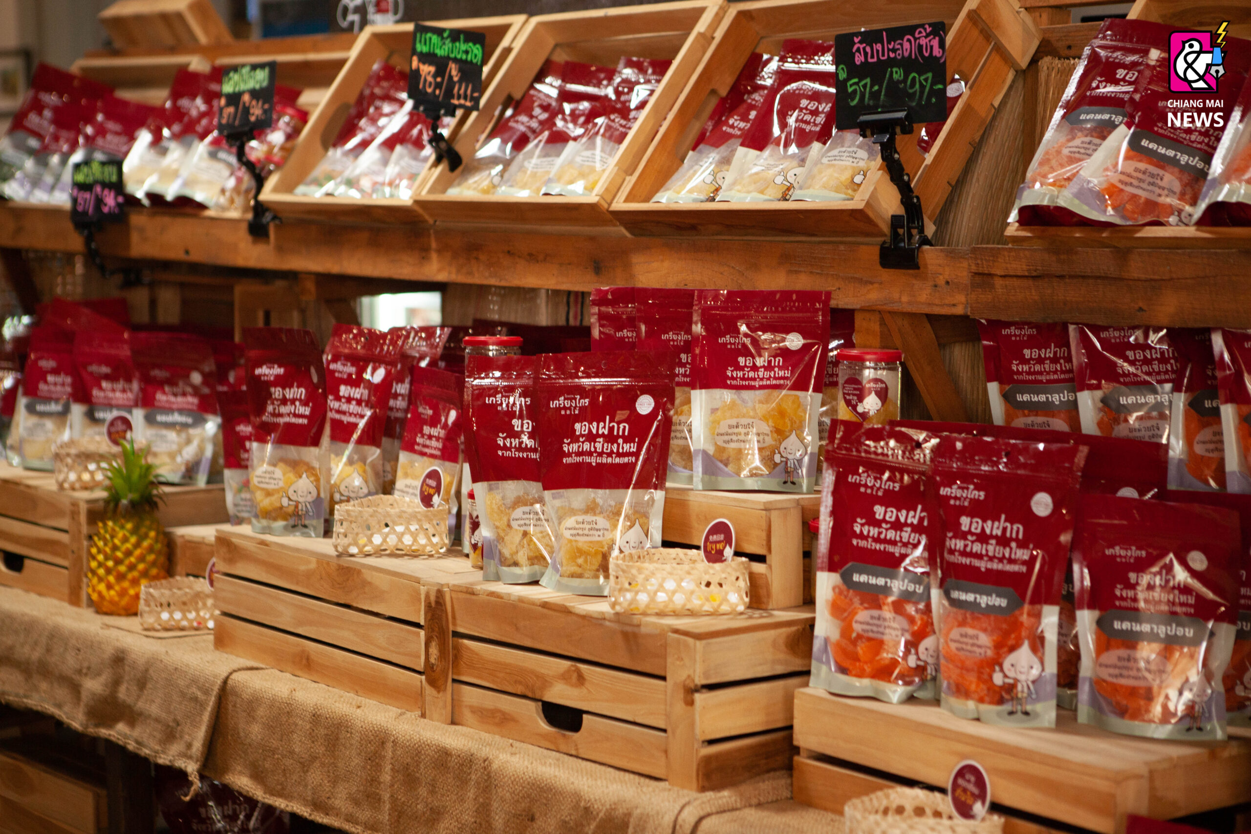 มีพิซซ่าของคนในแม่ริม เป็นพิซซ่า Homemade ทำด้วยมือ มีขนมเส้น คือ ขนมจีน น้ำพริก น้ำยา น้ำเงี้ยวอะไรต่างๆเข้ามา มีข้าวซอยเข้ามา มี Kombucha คือ ชาหมักของร้านน้องๆที่อยู่ในอ.แม่ริม ก็ทำเป็นงานเสริมทำด้วยใจรัก มีผลิตภัณฑ์พวกถั่ว ทานเพื่อเพิ่มพลังงาน แบรนด์ชื่อ Health Me Please และเรื่องของตัวเทียนหอมมีหลายอย่างเลยอยู่ในกาดแห่งนี้และนี่ก็คือ รวมสินค้าท้องถิ่นของชุมชนทั้งหมด