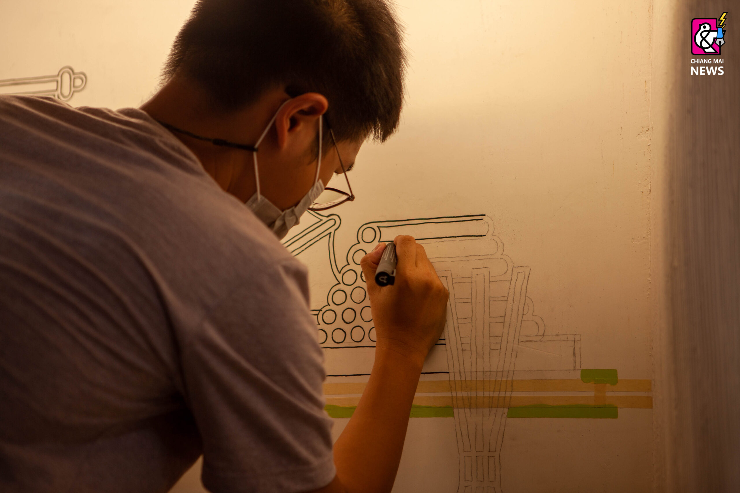 คือในกาดเองเนี่ย ผมเชื่อว่ายุคนี้เราเป็นยุคของ Instagrammable ผมว่าจุดถ่ายรูปในนั้นเวลาเราดีไซน์เนี่ย เราใส่เรื่องนี้เข้าไปอยู่ในนั้นด้วย ผมเชื่อว่ามีอยู่ประมาณ 200 จุดในนั้น มีมุมแบบที่เรียกว่าเราไม่ได้บอกอะแต่ต้องหาให้เจอ เพราะมุมนี้ถ่ายออกมาแล้วสวย แต่มุมที่เห็นแน่ ๆว่าสวยเนี่ย ในนั้นมีเยอะแยะมากเลย ไม่ว่าจะเป็น หลองข้าวข้างล่างข้างบน ในร้านมินิม่วนเอง เรามีงานศิลปะแทรกอยู่ในทุกแห่ง เรียกว่ามาอาทิตย์นึงแล้วยังไม่จบเลย ลายเส้นมินิมอล แล้วก็ในลายเส้นตรงนั้นมีความหมายซ่อนอยู่ในนั้นด้วย มันไม่ใช่สวยงามมันมีเนื้อหาซ่อนอยู่ในนั้น