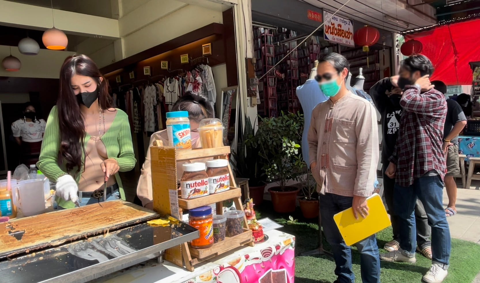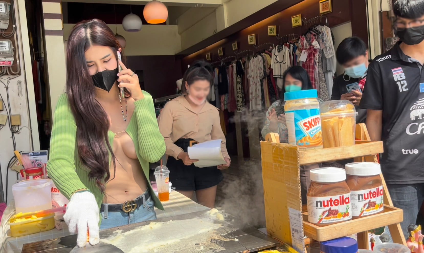 วันที่ 24 พ.ย.64 รายงานข่าวแจ้งว่า จากกระแสข่าวสุดฮือฮาที่เกิดขึ้นในพื้นที่จังหวัดเชียงใหม่ ที่มีแม่ค้าสาวสุดแซ่บ ผันตัวขายขนมโตเกียวเนยกรอบ ย่านถนนเจ็ดยอด-ช่างเคี่ยน ต.ช้างเผือก อ.เมือง จ.เชียงใหม่ ด้วยเอกลักษณ์การแต่งตัวที่สะดุดตา ดึงดูดลูกค้าด้วยชุดเสื้อแหวกอกโนบรา แถมมาพร้อมกับลีลาการทำขนมที่สนุกสนาน เต้นไปทำไปอย่างอารมณ์ดี จนมีลูกค้าหลากหลายคนพากันแห่ไปอุดหนุน ถ่ายภาพลงโซเชี่ยล กระทั่งกลายเป็นกระแสข่าวดังลงในหลากหลายสื่อ แตาก็มีกระแสวิพากษ์วิจารณ์หลากหลายด้านทั้งที่ชื่นชอบ และไม่ชื่นชอบ โดยเฉพาะในเรื่องของการแต่งตัวด้วยชุดแฟชั่นเสื้อแหวกอกโนบรา ที่ทางเจ้าตัวสวมใส่ขายขนม