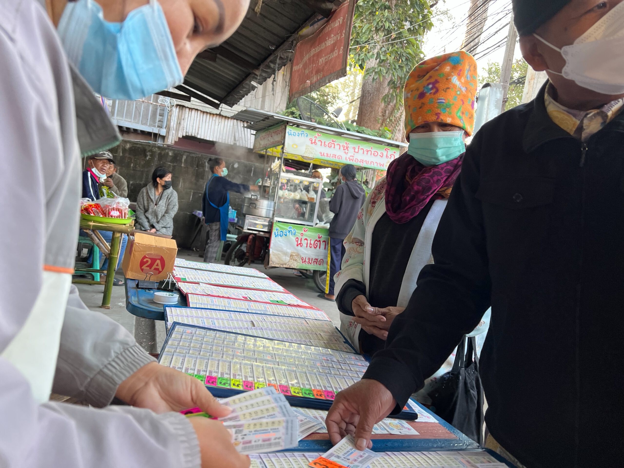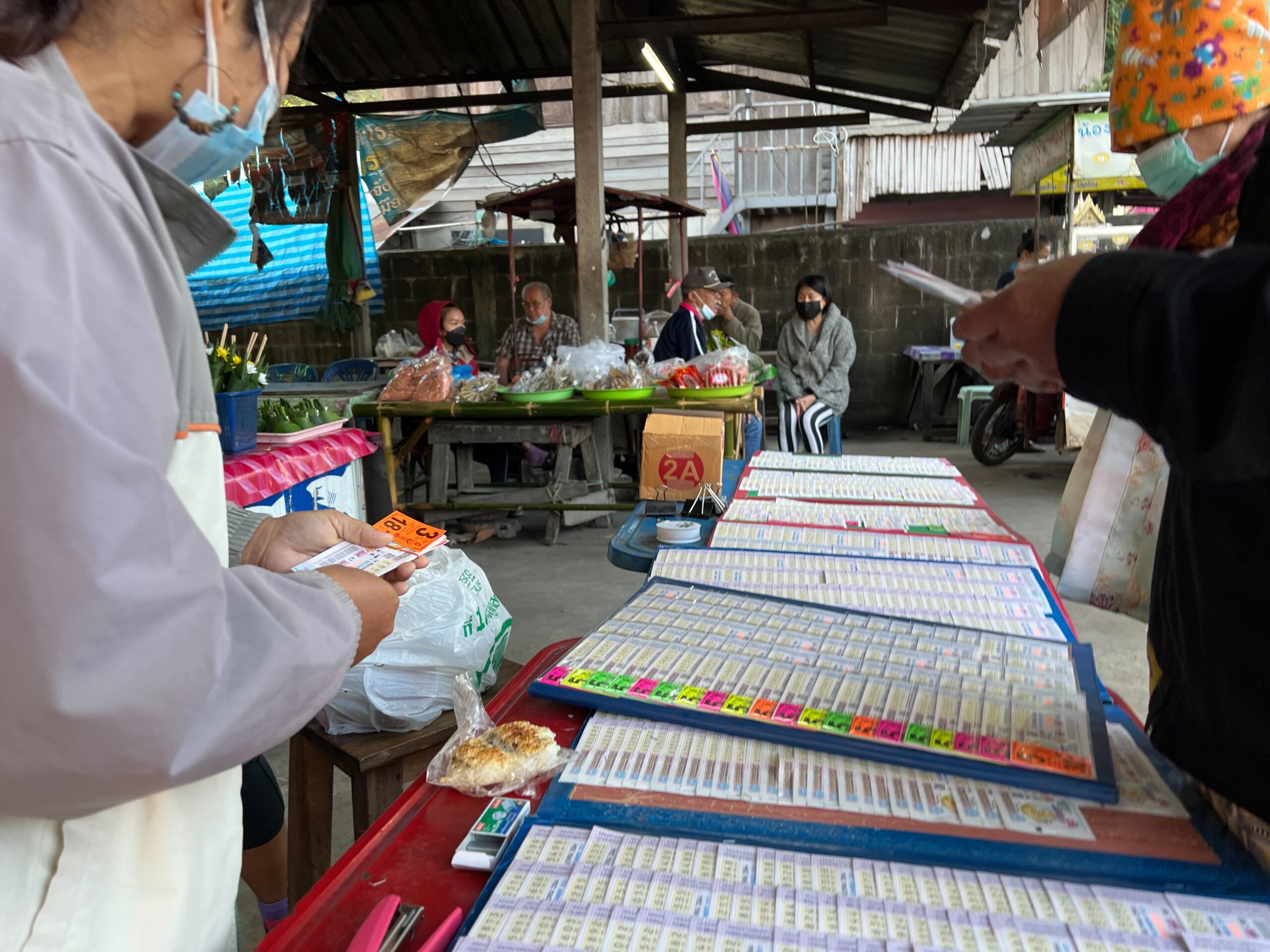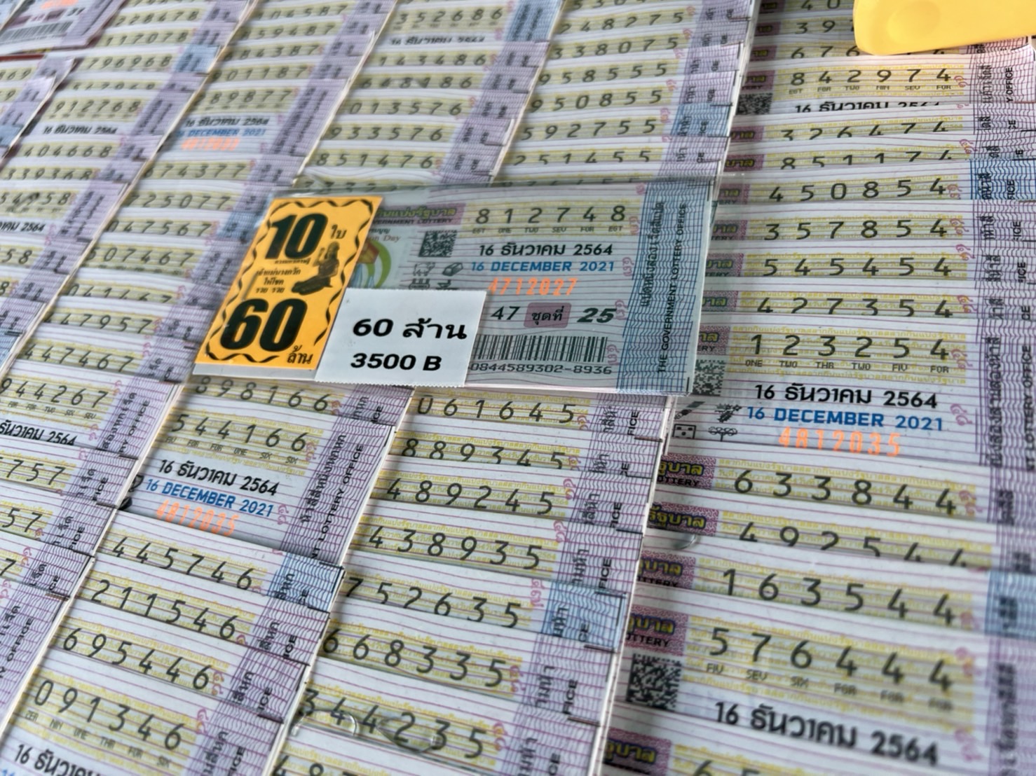 เมื่อเวลา 11.00 น. วันที่ 7 ธันวาคม 64 มีรายงานข่าวว่า บรรดาพ่อค้าแม่ค้าตามแผงต่างๆ ต่างนำหวยออกมาเย็บใส่แผง และวางจำหน่ายตามจุดต่างๆ โดยราคาหวยนั้นยังคงแพงเหมือนเดิม