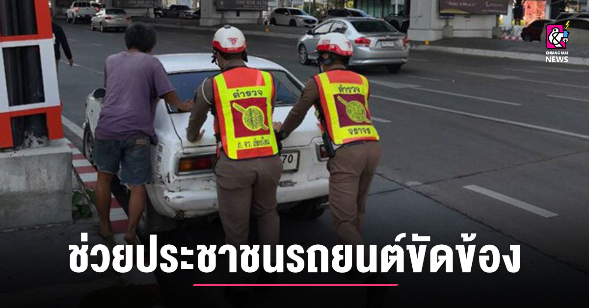 เจ้าหน้าที่ตำรวจจราจร กลุ่มงานจราจรตำรวจภูธรจังหวัดเชียงใหม่ ช่วยเหลือประชาชนรถยนต์ขัดข้อง จึงได้ช่วยเข็นรถคันดังกล่าวให้พ้นจากการกีดขวางจราจร และรอประสานช่างทำการซ่อมแซมรถยนต์ให้ประชาชนต่อไป