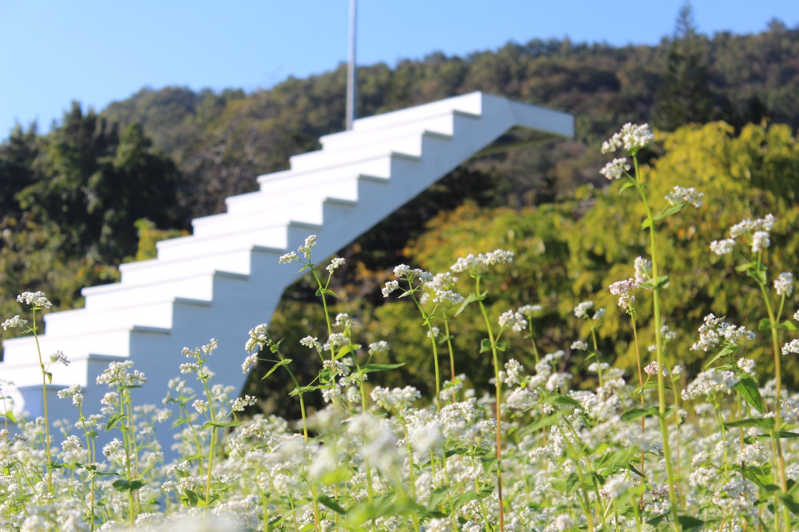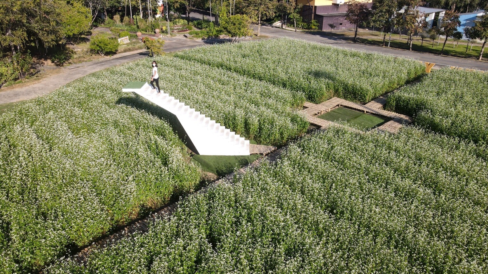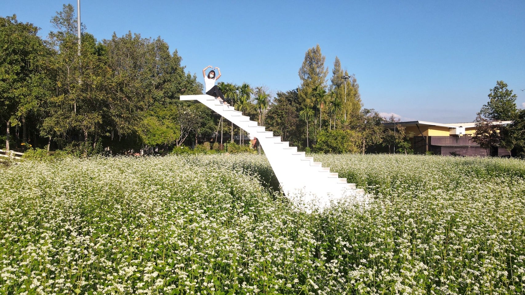 “ทุ่งดอกบัควีท”ในอุทยานหลวงราชพฤกษ์ที่ตอนนี้กำลังบานสะพรั่งหลายหมื่นต้น ดอกสีขาวราวดั่งหิมะให้ได้ถ่ายรูปกันแบบรัวๆ พร้อมมุมถ่ายรูปกับบันไดสวรรค์ ที่ขึ้นไปถ่ายรูปและมองเห็นวิวท้องฟ้าสวยๆ แบบไม่มีอะไรมากั้นจะถ่ายมุมไหน ก็สวยไม่ซ้ำ ซึ่งอุทยานหลวงราชพฤกษ์ ได้จัดแสดงปลูกครั้งแรก และจะบานสะพรั่งให้ชมตลอดเดือนมกราคม 2565