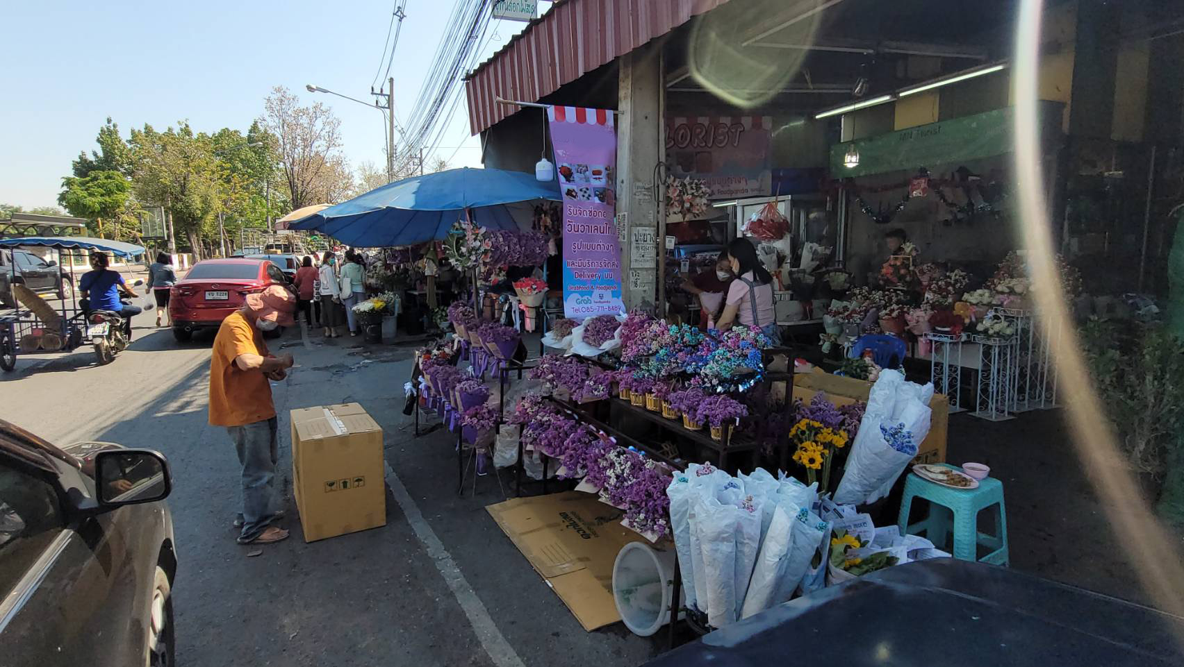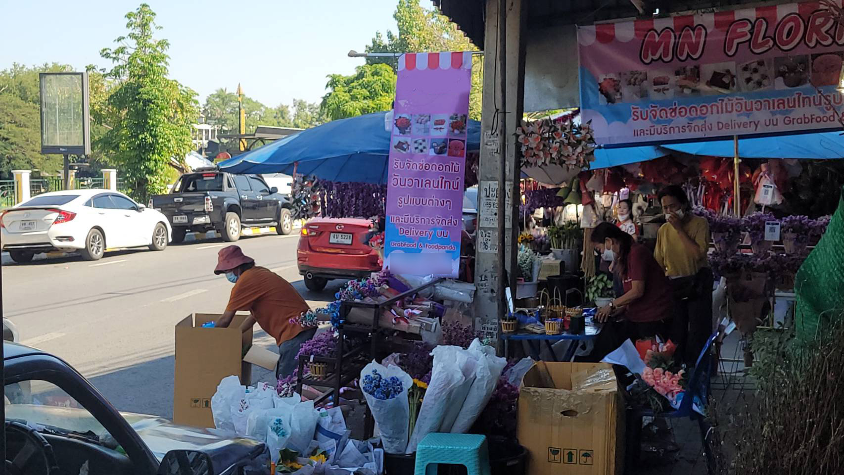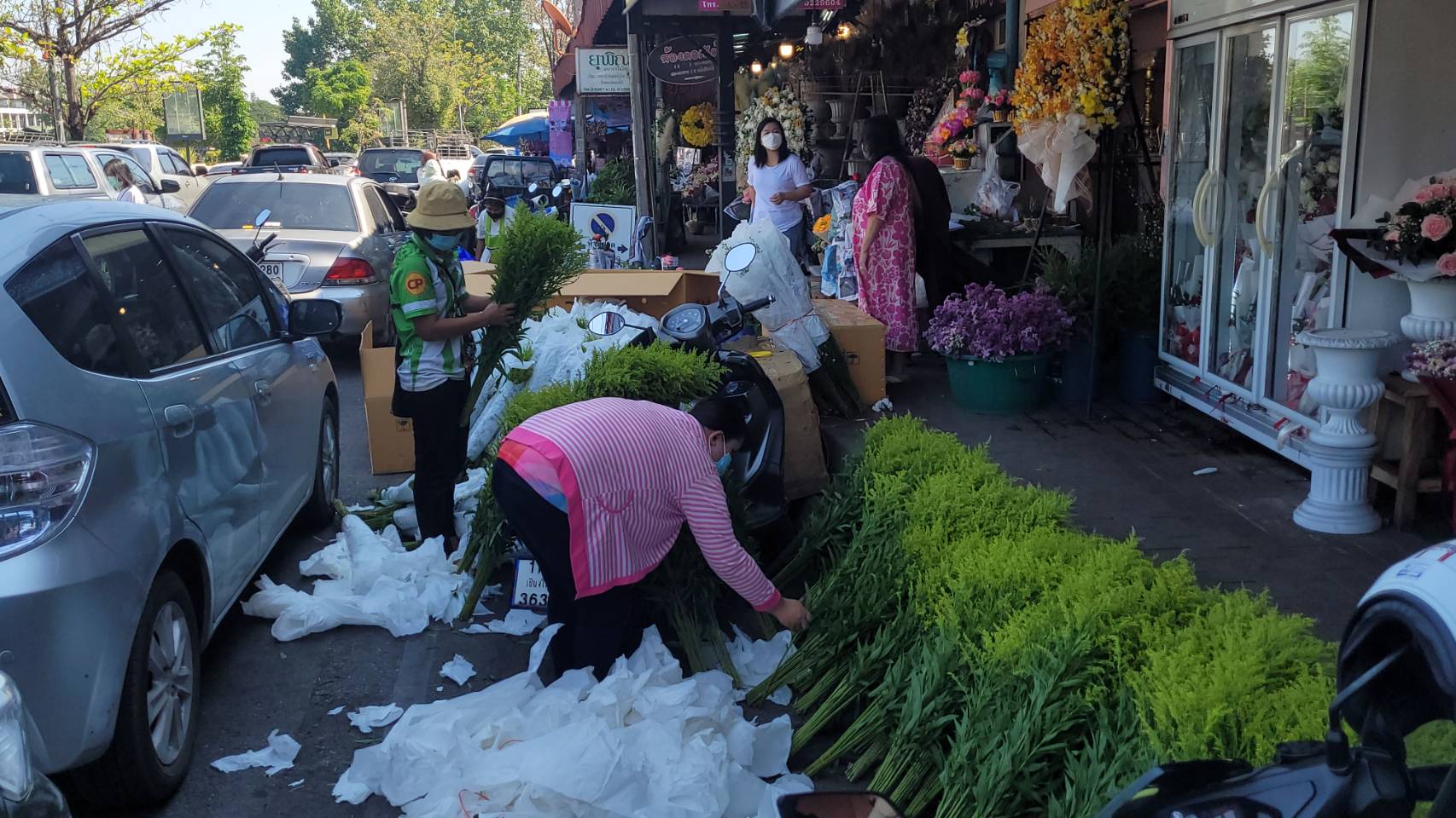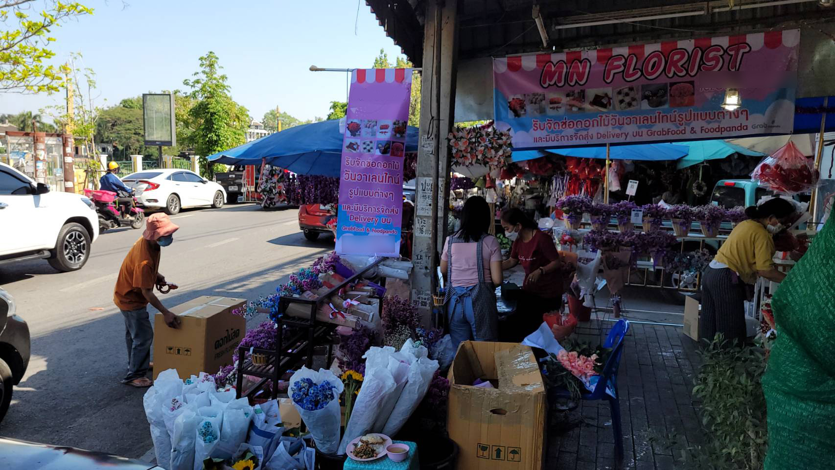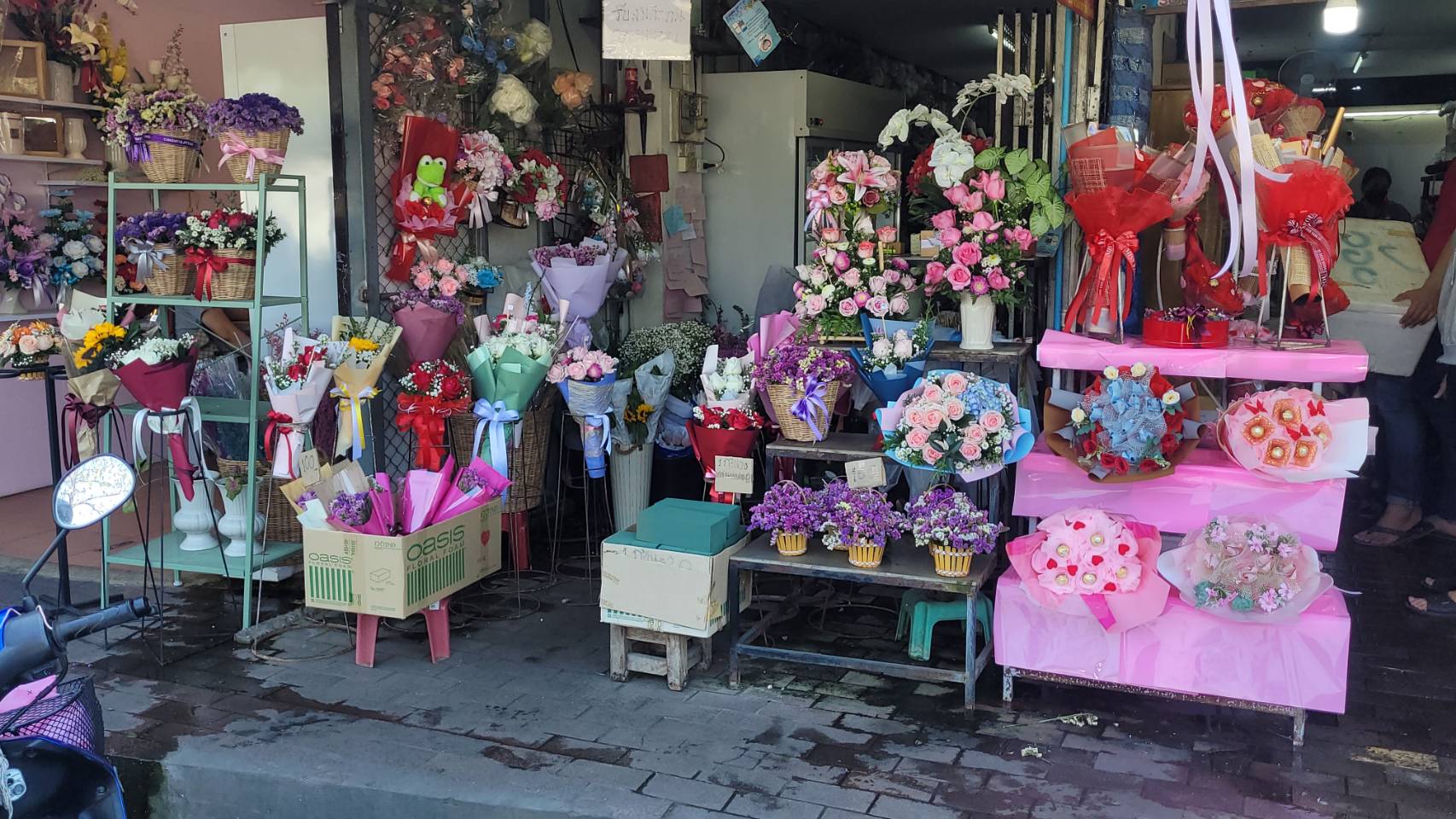จากการสำรวจพบว่าร้านดอกไม้ต่างๆ ในย่านนี้ต่างมีการจัดตกแต่งร้านให้เข้ากับบรรยากาศในช่วงเทศกาลวาเลนไทน์ โดยได้มีการนำดอกกุหลาบสัญลักษณ์ของวันแห่งความรัก หลากสีสัน ตกแต่งเป็นข่อสวยงาม นำมาวางจำหน่ายทั้งในรูปแบบช่อหรือแบบดอกเดี่ยว หรือที่ตกแต่งด้วยดอกไม้พร้อมตุ๊กตา นอกจากนี้ ทางร้านก็ยังได้มีการเตรียมดอกกุหลาบไว้จำหน่ายอีกจำนวนมาก เพื่อรองรับความต้องการของลูกค้า ที่คาดว่าจะมีเพิ่มขึ้นมากในช่วง 13-14 ก.พ.นี้
