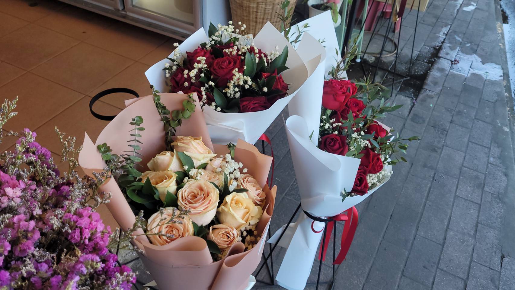จากการสอบถามทางด้าน นางเปล่งศรี นาคขำ เจ้าของร้านขายดอกไม้ บอกว่า ในส่วนของบรรยากาศก่อนวันวาเลนไทน์ปีนี้ ก็เริ่มคึกคักตามลำดับ มีออเดอร์ลูกค้าทยอยสั่งซื้อดอกกุหลาบแบบต่างๆ เข้ามาเรื่อยๆ แล้วจำนวนหนึ่ง และเชื่อว่าน่าจะเพิ่มมากขึ้นไปอีก เมื่อถึงวันวาเลนไทน์นี้ สำหรับลูกค้าที่สั่งซื้อนั้นยังคงเป็น กลุ่มคนทำงาน รวมทั้งกลุ่มวัยรุ่น และนักเรียน นักศึกษาบ้างบางส่วน แต่ส่วนใหญ่เป็นลูกค้าประจำ คิดเป็นสัดส่วนประมาณ 80%