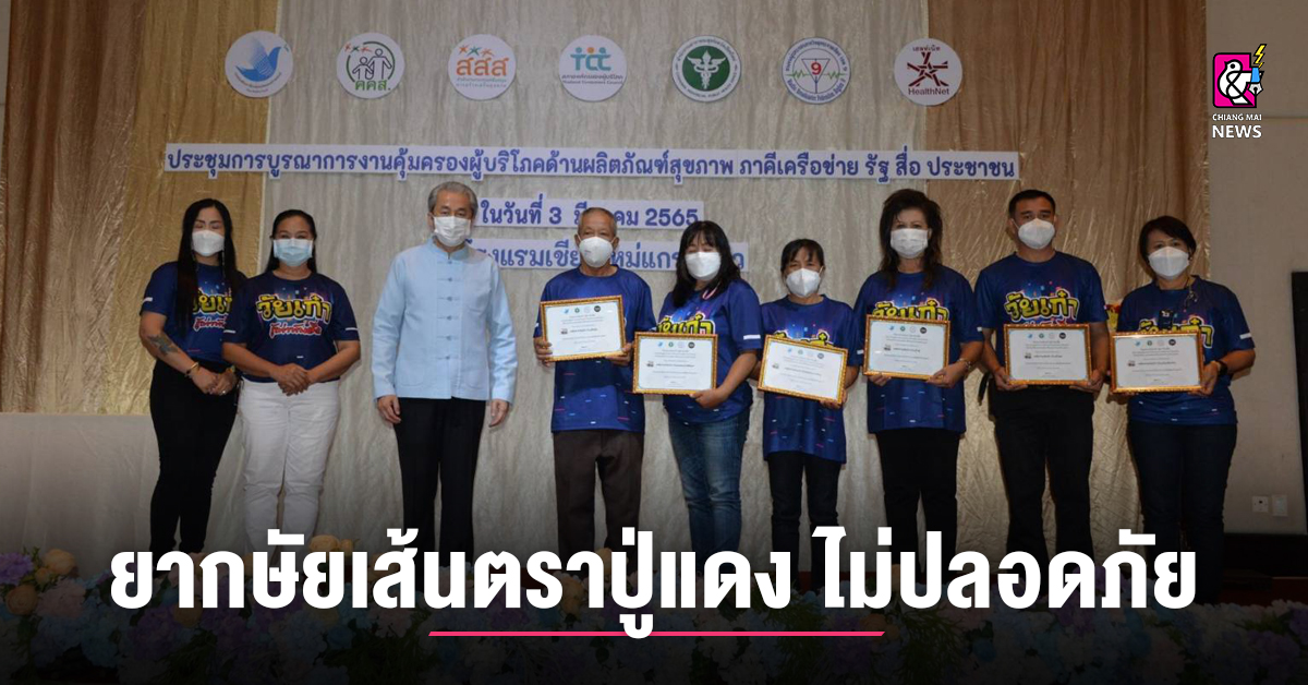 สำนักงานสาธารณสุขจังหวัดเชียงใหม่ ได้จัดการประชุมการบูรณาการงานคุ้มครองผู้บริโภค ด้านผลิตภัณฑ์สุขภาพ โดยภาคีเครือข่าย รัฐ สื่อ ประชาชน เพื่อสานพลังสร้างความเข้มแข็ง รู้เท่าทันสื่อ ร่วมกันแก้ไขปัญหาแบบบูรณาการดำเนินงานร่วมกัน โดยมีชมรมผู้ประกอบการวิทยุเขต 9 เชียงใหม่ ซึ่งได้รับทุนจากกองทุนพัฒนาสื่อปลอดภัยและสร้างสรรค์ จัดกิจกรรมให้ความรู้แก่ประชาชนโดยเฉพาะกลุ่มผู้สูงอายุ หรือวัยเก๋าได้รู้เท่าทันเลือกบริโภคผลิต ภัณฑ์ที่เหมาะสม ตามชื่อโครงการ “วัยเก๋ารู้เท่าทันสื่อ” และกลุ่มงานคุ้มครองผู้บริโภคและเภสัชสาธารณสุขจังหวัดเชียงใหม่ ร่วมกับมูลนิธิพัฒนาเครือข่ายสุขภาพ สำนักงานภาคเหนือ ดำเนินโครงการพัฒนาเครือข่ายภาคประชาชนในการมีส่วนร่วมแก้ไขปัญหาผลิตภัณฑ์สุขภาพอันตราย และการโฆษณาผลิตภัณฑ์ สุขภาพผิดกฎหมายในชุมชนแบบบูรณาการจังหวัดเชียงใหม่ ได้รับงบสนับสนุนจากศูนย์วิชาการคุ้มครองผู้บริโภคด้านสุขภาพ ช่วยกันสำรวจ เฝ้าระวัง เยี่ยมบ้าน จนพบว่ามีการใช้ผลิตภัณฑ์อันตราย รวมถึงหน่วยงานสภาองค์กรของผู้บริโภค ได้ขยายเครือข่ายแกนนำภาคประชาชนอีกหลายพื้นที่ในจังหวัดเชียงใหม่