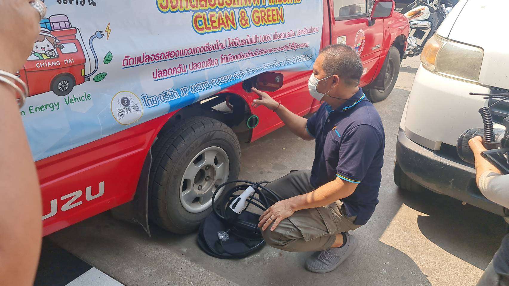 เจ้าของอู่รถเชียงใหม่ ดัดแปลงรถสี่ล้อแดงเป็นรถไฟฟ้าต้นแบบ พร้อมเปิดอู่รับดัดแปลงรถยนต์-จักรยานยนต์เก่าเป็นรถไฟฟ้า เป็นทางเลือกยุคน้ำมันแพง