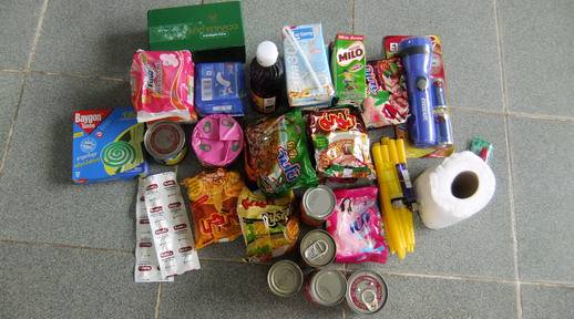- สิ่งของจำเป็นในช่วงเกิดภัย อาทิ ไฟฉาย วิทยุ เทียนไข ถ่านไฟฉาย เชือก นกหวีด ถุงพลาสติก มีดพับ