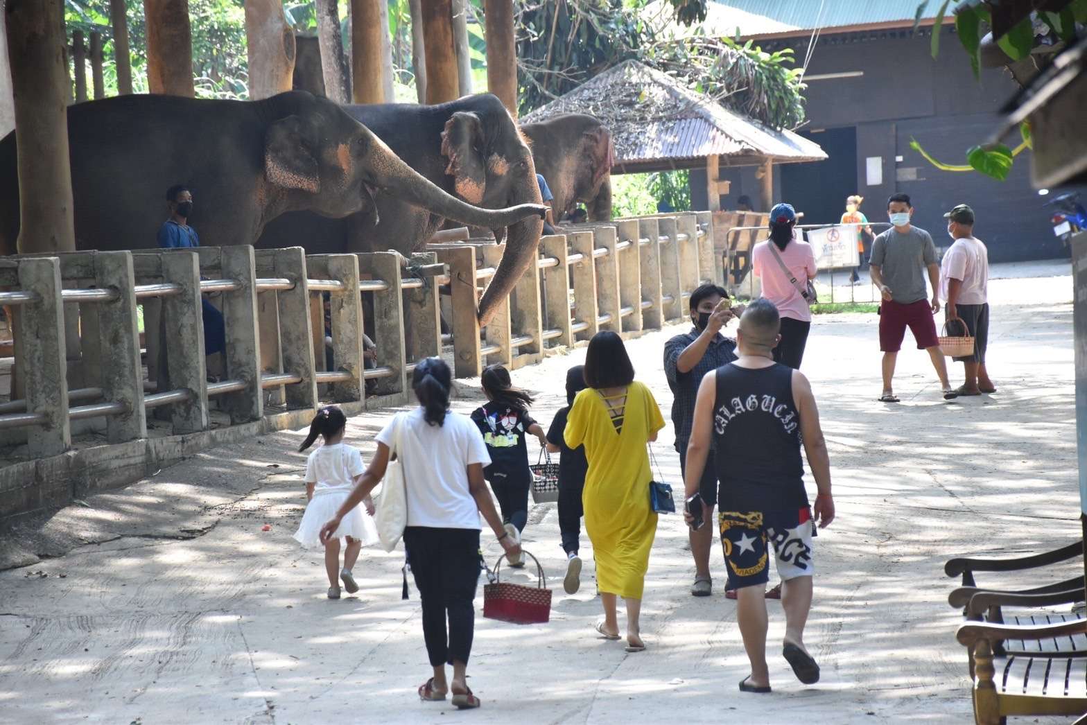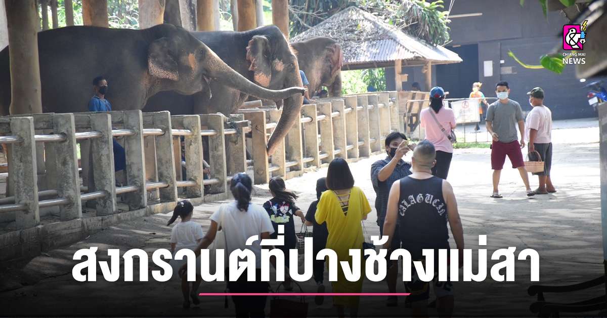 เมื่อวันที่ 13 เมษายน 2565 ซึ่งเป็นวันสงกรานต์ หรือวันขึ้นปีใหม่ไทย นางอัญชลี กัลมาพิจิตร ผู้บริหารปางช้างแม่สาได้ให้สัมภาษณ์ถึงจำนวนผู้ที่เดินทางมาท่องเที่ยวในช่วงเดือนเมษายน ซึ่งมีวันหยุดยาวในเทศกาลสงกรานต์ ตัวเลขนักท่องเที่ยวจากวันที่ 1 เมษายน มาถึงวันที่ 13 เมษายน มีนักท่องเที่ยวเข้าชมช้างฟรีที่ปางช้างแม่สาแล้วรวม 2,314 คน โดยเฉพาะวันที่ 13 เมษายน มีผู้เข้าชมช้างมากถึง 413 คน เมื่อนำมาเปรียบเทียบกับเดือนมีนาคมที่ผ่านมาทั้งเดือนมีนักท่องเที่ยวรวม 3,372 คน เฉลี่ยวันละแค่ 112 คน แต่ในเดือนเมษายน เฉลี่ยเพิ่มขึ้นถึงวันละ 178 คน สร้างความคึกคักให้กับช้างเลี้ยงและควาญ รวมถึงพนักงานบริการในส่วนต่างๆ