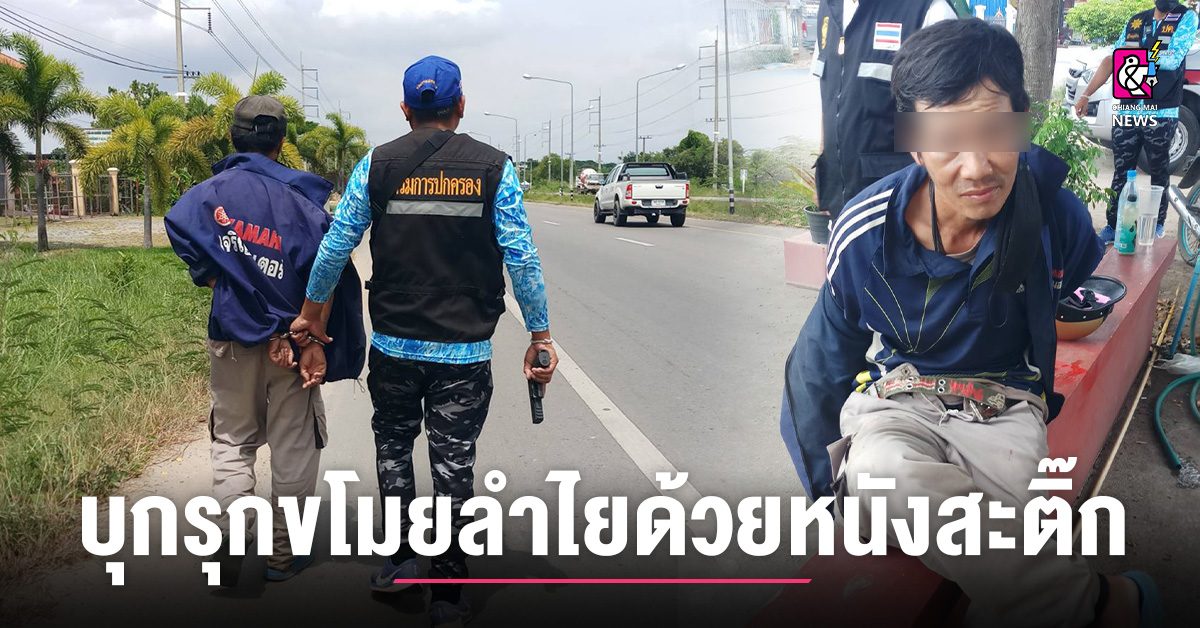 จับหนุ่มใหญ่ไร้สัญชาติเพิ่งพ้นคุก บุกรุกสวนลำไย ขโมยลำไย และทำร้ายร่างกายเจ้าของที่ใช้ไม้ตีหัวจนได้รับบาดเจ็บ ฝ่ายปกครองผู้ใหญ่บ้าน ผู้ช่วย เร่งติดตามจับกุม สุดเหิมไม่ยอมให้จับซ้ำใช้หนังสะติ๊กยิงต่อสู้กับเจ้าหน้าที่