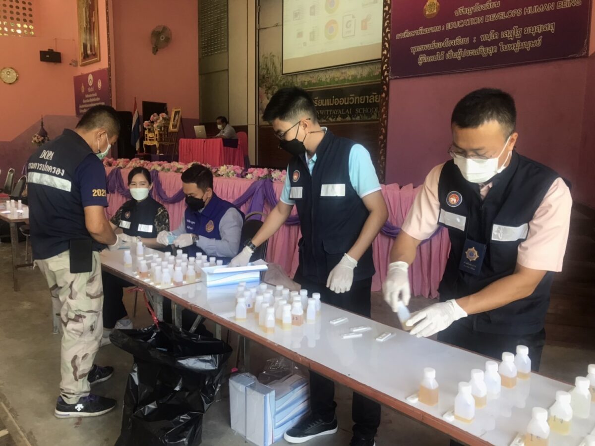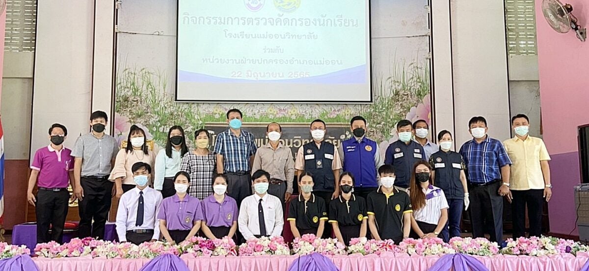 ในเวลาต่อมาได้มอบหมายให้ นายสิทธิพัฒ บุญทรง ปลัดอำเภอฝ่ายความมั่นคง นำสมาชิก อส. ร้อย อส.อ.แม่ออน 24 ร่วมกับบุคลากรทางการศึกษา โรงเรียนแม่ออนวิทยาลัย ดำเนินการตรวจคัดกรองนักเรียน เพื่อไม่ให้เกี่ยวข้องกับยาเสพติด โดยได้ตรวจคัดกรองหาสารเสพติดนักเรียนในชั้นมัธยมต้น และมัธยมปลาย รวมจำนวน 320 คน “ผลการตรวจเป็นลบทั้งหมด” ผลการปฏิบัติหน้าที่เป็นไปด้วยความเรียบร้อย