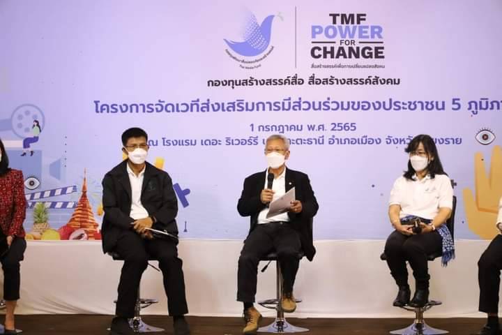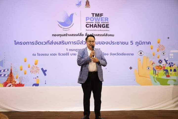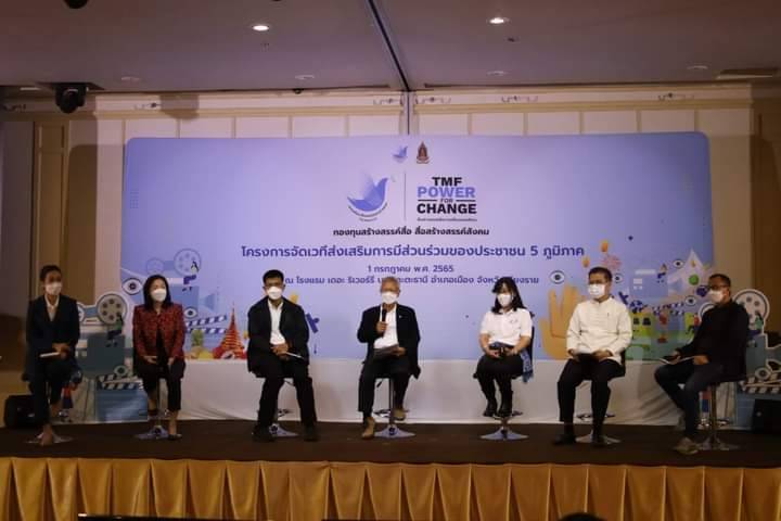 กองทุนพัฒนาสื่อปลอดภัยและสร้างสรรค์ จัดเวทีส่งเสริมการมีส่วนร่วมของประชาชน สัญจร 5 ภูมิภาค ปี 2565 ชูแนวคิด “กองทุนสร้างสรรค์สื่อ สื่อสร้างสรรค์สังคม” เปิดเวที “TMF POWER FOR CHANGE สื่อสร้างสรรค์เพื่อการเปลี่ยนแปลงสังคม” ครั้งที่ 2 ภาคเหนือ จ.เชียงราย เปิดพื้นที่สร้างพลังการมีส่วนร่วม รู้เท่าทันสื่อ สร้างเครือข่ายนิเวศสื่อที่ดี พร้อมยกระดับสู่แนวร่วมผลิตสื่อปลอดภัยและสร้างสรรค์