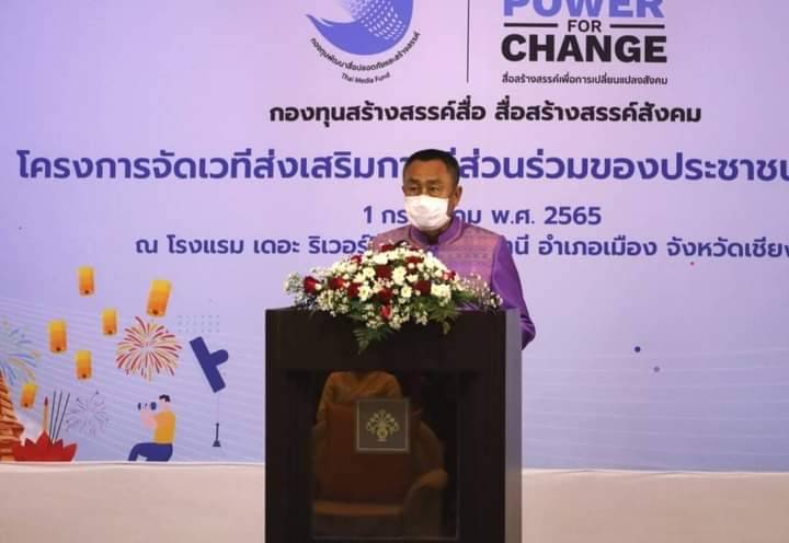 วันที่ 1 ก.ค. 65 ที่โรงแรมเดอะริเวอร์รี บาย กะตะธานี จังหวัดเชียงราย กองทุนพัฒนาสื่อปลอดภัยและสร้างสรรค์ (Thai Media Fund : TMF) จัดเวทีส่งเสริมการมีส่วนร่วมของประชาชน 5 ภูมิภาค ประจำปี 2565 ครั้งที่ 2 ภาคเหนือ โดยมี ดร.ยุพา ทวีวัฒนะกิจบวร ปลัดกระทรวงวัฒนธรรม ประธานอนุกรรมการบริหารกองทุนพัฒนาสื่อปลอดภัยและสร้างสรรค์ เป็นประธานเปิดงาน พร้อมด้วย ดร.ธนกร ศรีสุขใส ผู้จัดการกองทุนพัฒนาสื่อปลอดภัยและสร้างสรรค์ นายพินิจ แก้วจิตคงทอง รองผู้ว่าราชการจังหวัดเชียงราย กล่าวต้อนรับ รวมทั้งเครือข่ายภาคีและประชาชนที่สนใจ ร่วมงานอย่างคับคั่ง