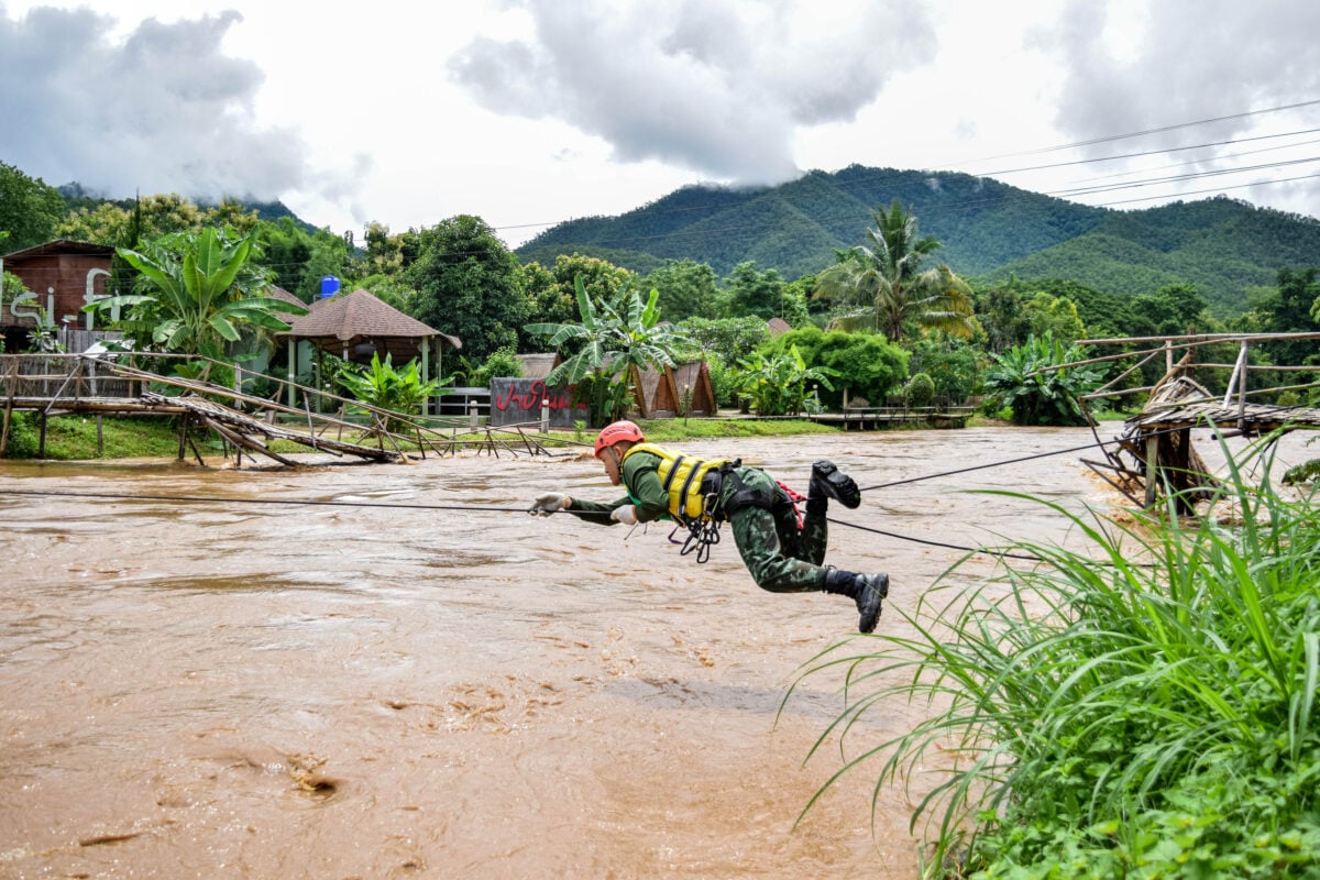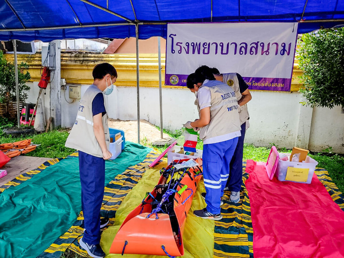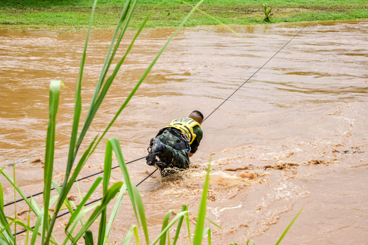 เมืองปาย จ.แม่ฮ่องสอน ซ้อมแผนปฏิบัติการการป้องกันและบรรเทาสาธารณภัย เหตุอุทกภัย น้ำป่าไหลหลากและดินถล่ม ท่ามกลางสถานการณ์จริงน้ำในแม่น้ำปายน้ำเพิ่มระดับทำให้สะพานลำลองขาดเสียหายจนไม่สามารถใช้สัญจรไปมาได้