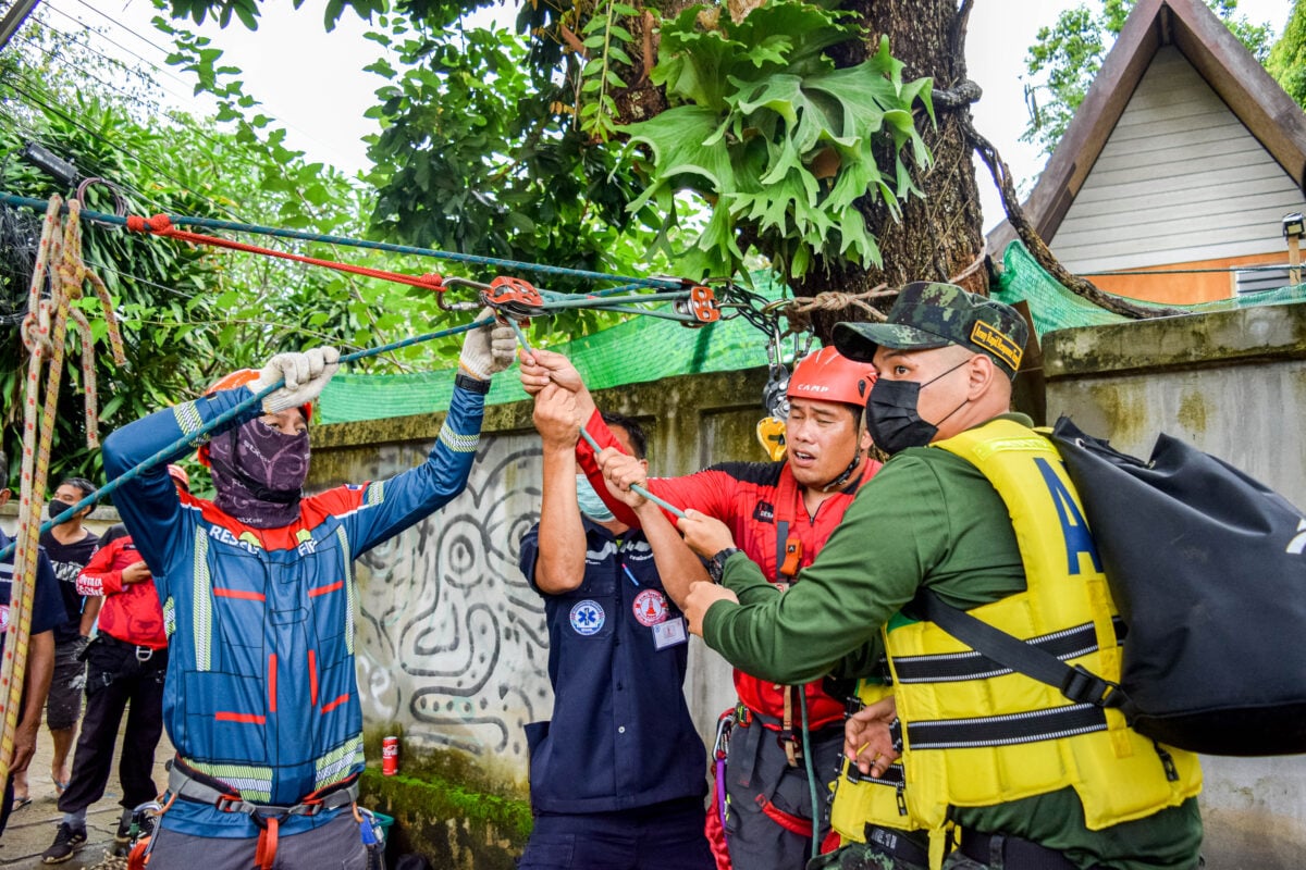 โดยการซ้อมแผนดังกล่าว ได้จัดขึ้นที่ชุมชนป่าขาม หมู่ 3 ต.เวียงใต้ อ.ปาย ฯ ซึ่งมีหน่วยงานที่เกี่ยวข้องเข้าร่วมซ้อมแผน ประกอบด้วย ส่วนราซการ องค์กรส่วนท้องถิ่น ,ทหาร ร.7 พัน 5 , ตำรวจภูธร สภ.ปาย , อปพร. นักเรียน และประชาชนจิตอาสา รวมจำนวน จำนวน 200 คน จำลองว่ามีเหตุน้ำป่าในแม่น้ำปาย กำลังไหลหลากอย่างรุนแรง และให้มีราษฎรที่อาศัยอยู่อีกฝั่งของแม่น้ำปาย ต้องการความช่วยเหลือ ทางหน่วยงานที่ร่วมซ้อมจึงได้ทำการจัดกำลังออกไปช่วยเหลือด้วยการโรยตัวจากเชือกที่โยงข้ามแม่น้ำ