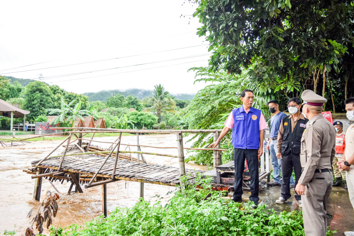 สำหรับสถานการณ์เกี่ยวกับฝนตก ล่าสุดในพื้นที่ของจังหวัดแม่ฮ่องสอนยังคงมีฝนตกหนักอย่างต่อเนื่อง ส่งผลให้ปริมาณน้ำในแม่น้ำสายต่าง ๆ เพิ่มสูงขึ้นอย่างน่าวิตก ขณะที่ในพื้นที่ของอำเภอปาย น้ำในแม่น้ำปายยังคงเพิ่มระดับสูงขึ้นอย่างต่อเนื่อง และกระแสน้ำได้ซัดสะพานที่เชื่อมต่อระหว่างบ้านป่าขาม ต.เวียงใต้ กับ บ้านแม่เย็น ต.แม่ฮี้ ขาดสะบั้น ไม่สามารถใช้การได้ อนึ่งสะพานดังกล่าวเป็นสะพานไม้ลำลองที่ใช้เดินเท้าข้ามแม่น้ำปาย ไปยังรีสอร์ตที่อยู่ในพื้นที่บ้านแม่เย็น ฯ