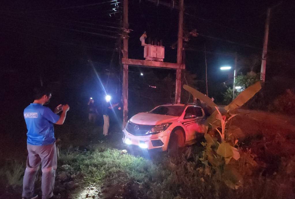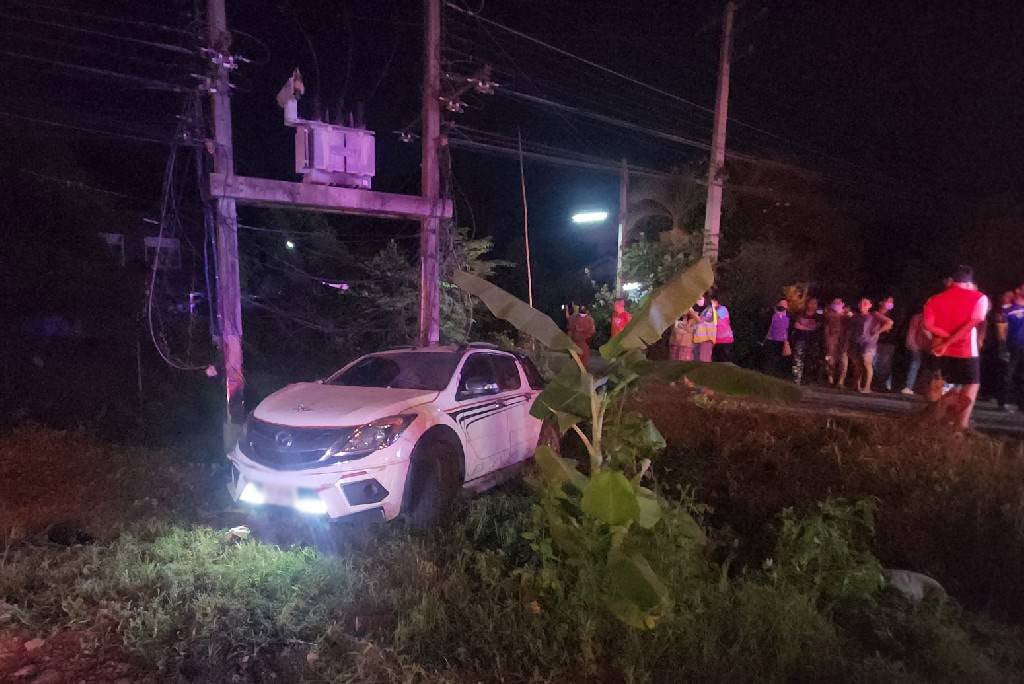 จากการสอบภามนายพรศักดิ์ ผู้โดยสารที่นั่งมาภายในรถยนต์ คันดังกล่าว ซึ่งได้รับบาดเจ็บเล็กน้อย เล่าว่าขนาดที่เกิดเหตุได้เดินทางการกับมาจากท่องเที่ยวถนนหมายเลข 3 อำเภอบ่อเกลือและสถานที่ท่องเที่ยวต่างๆในจังหวัดน่านและได้เดินทางกลับเมื่อมาถึงที่เกิดเหตุซึ่งเป็นทางโค้ง มีการก่อสร้างถนนและสะพานลอย ซึ่งมีเนินเป็นรอยต่อเนื่องจากถนนสร้างใหม่ อยู่บริเวณในโค้ง ประกอบได้มีรถ จยย.ออกจากถนนภายในซอยตัดหน้าอย่างกระชั้นชิดทำให้คนขับเบรกกะทันหันและรถยนต์ได้เสียหลักหมุนเอาด้านขวาคนขับชนและปะทะกับเสาไฟฟ้าแรงข้างทางดังกล่าว จนมีผู้ได้รับบาดเจ็บ ติดอยู่ภายในรถยนต์กระบะ และรถกระบะพังยับได้รับความเสียหายเกือบทั้งคัน
