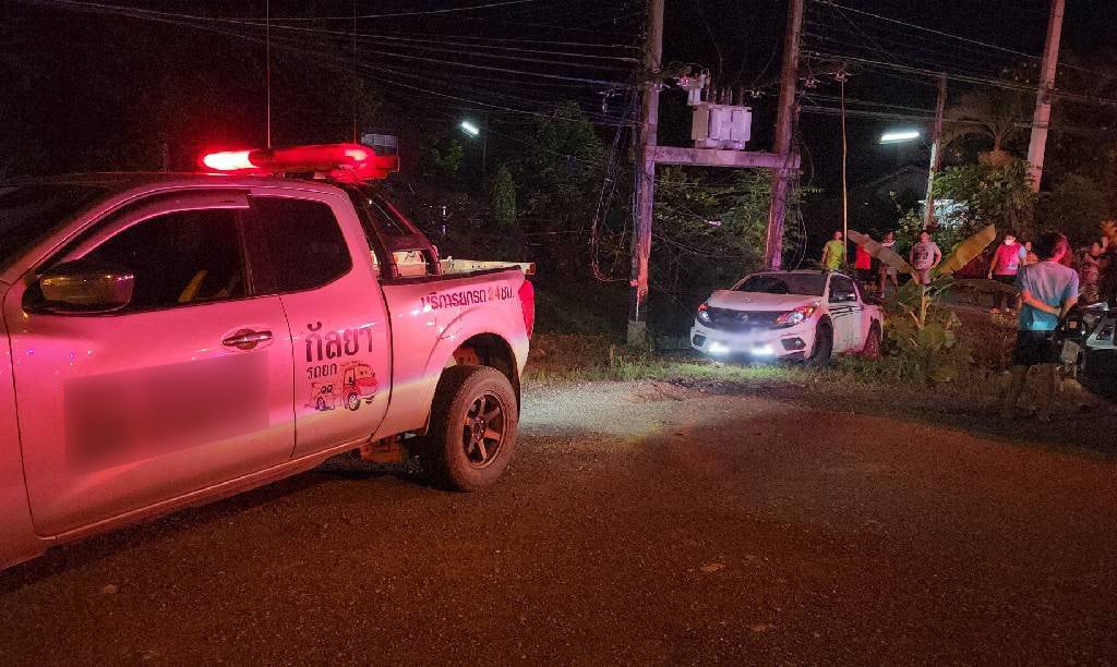 เมื่อวันที่ 28 สิงหาคม 2565 เวลา 18.40 น. ร.ต.อ. จิรัฐ จันสว่าง พงส.สภ.เมืองน่าน ได้รับแจ้งจากศูนย์วิทยุ 191 ตำรวจภูธรจังหวัดน่านแจ้งว่ามีอุบัติเหตุรถยนต์ กระบะ เสียหลักลงข้างทาง ชนเสาไฟฟ้าแรงสูง ที่ถนนน่าน – ทุ่งช้าง บริเวณ ก่อสร้างสะพานลอยข้ามถนนตรงข้ามโรงเรียนบ้านผาตูบ ตำบลผาสิงห์ อำเภอเมืองน่าน จังหวัดน่าน มีผู้ได้รับบาดเจ็บเป็นชาย 2 ราย หญิง 2 ราย รวม 4 ราย ติดอยู่ในรถยนต์ สาหัส 1 ราย จึงรถไปตรวจสอบในที่เกิดเหตุพบทีมกู้ชีพ อบต.ผาสิงห์ , กู้ชีพ-กู้ภัย น่าน , ทีมรถตัดถ่าง อบจ. น่าน , อาสาสมัคร ชุดเหยี่ยวฟ้า , กู้ชีพศูนย์นเรนทรโรงพยาบาลน่าน กำลังให้ความช่วยเหลือผู้ที่ได้รับบาดเจ็บและที่ติดอยู่ภายในรถยนต์ประกอบด้วย 1. นายสนั่น (สงวนนามสกุล) อายุ 40 ปี บ้าน ม.2 บ.ดอนแท่น ต.กลางเวียง อ.เวียงสา จ.น่าน 2.นางรัตติกาล (สงวนนามสกุล) อายุ 40 ปี บ้าน ม.2 บ.ดอนแท่น ต.กลางเวียง อ.เวียงสา จ.น่าน 3.นางกรรณิการ์ (สงวนนามสกุล) อายุ 40 ปี บ้าน ม.2 บ.ดอนแท่น ต.กลางเวียง อ.เวียงสา จ.น่าน และนายพรศักดิ์ (สงวนนามสกุล) อายุ 38 ปี บ้าน ต.นาภู อ.ยางสีสุราช จ.มหาสารคาม ชุดปฏิบัติการฉุกเฉินการแพทย์เร่งทำการปฐมพยาบาลช่วยเหลือในเบื้องต้น ณ จุดเกิดเหตุ ก่อนจะนำส่งรักษาตัวต่อที่โรงพยาบาลน่าน