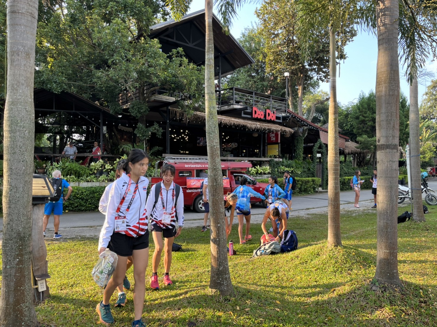 ส่วนนักกีฬาวิ่งเทรล ที่รอการปล่อยตัวที่เดินทางมาแล้ว ก็ใช้ลานจอดรถของโรงแรมในการวอร์มร่างกาย และใช้ห้องน้ำของโรงแรมได้ตลอดในช่วงจัดการแข่งขันวิ่งเทรลครั้งนี้