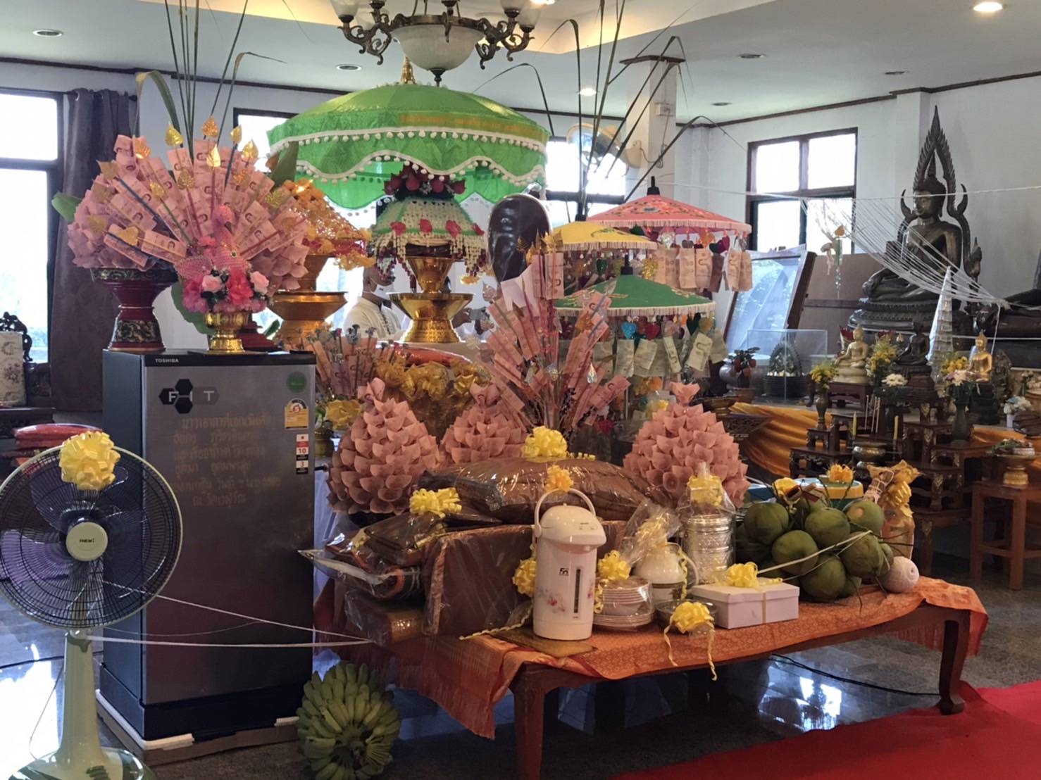 สำหรับพิธีทอดกฐินในครั้งนี้มีคุณแม่เหรียญ ประมาลย์และคุณบุญลือฤทธิ์-คุณฐิตาพร อุดมพรสุข และครอบครัว ห้างหุ้นส่วนจำกัดบัวหลวงคอสเมติกส์และบริษัทคาวิน เฮิร์บ จำกัด เป็นเจ้าภาพทอดกฐินในครั้งนี้