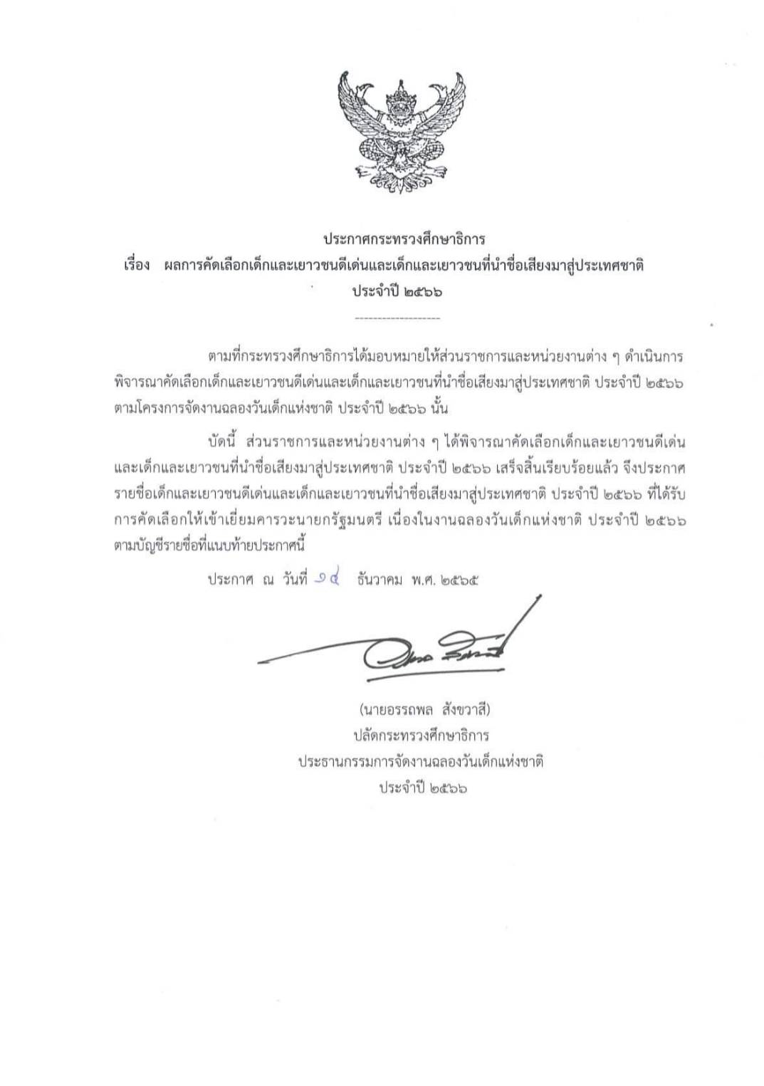 เยาวชนดีเด่นนำชื่อเสียงมาสู่ประเทศชาติ