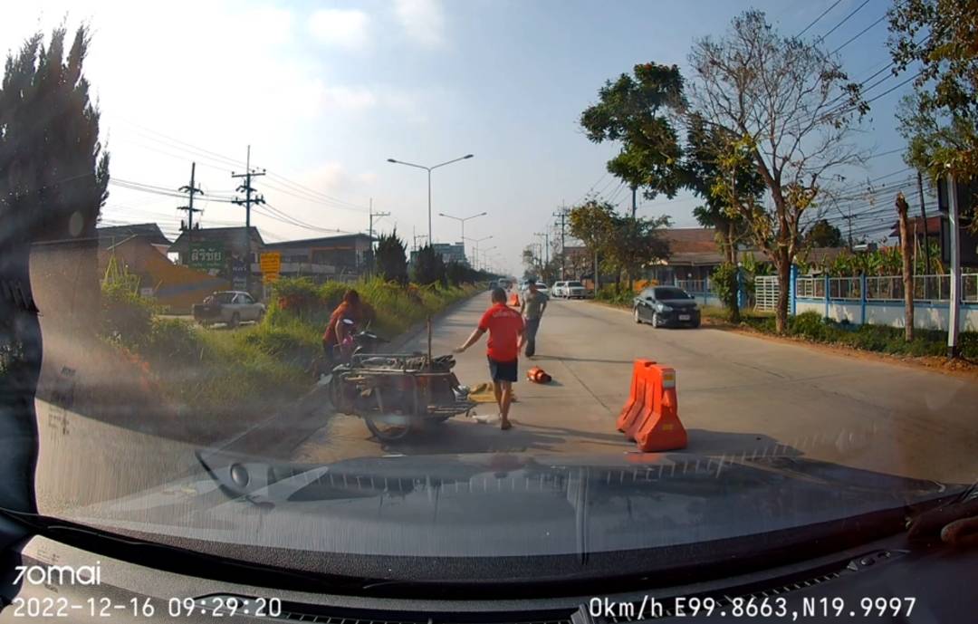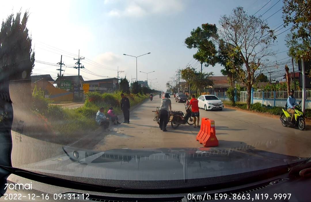 โดยในคลิปวีดีโอเป็นภาพขณะรถของผู้โพสต์ ได้ขับขี่ตามหลังรถตู้รับส่งนักเรียนคันหนึ่ง ซึ่งขับขี่อยู่บนถนนพหลโยธิน ช่วงแม่จัน-เชียงราย ขาเข้าเมืองเชียงราย ขณะขับมาถึงทางแยกไปบ้านแม่ข้าวต้ม-ท่าข้าวเปลือก ซึ่งกำลังมีการก่อสร้างถนนเป็นระยะทางประมาณ 1 กม. รถขาเข้าเมืองจึงต้องเบี่ยงรถไปทางถนนฝั่งขาออก เพื่อขับขี่สวนเลนกันโดยมีแบริเออร์พลาสติก มากั้นกลางถนนเป็นช่วงๆ แต่ขณะเลยทางแยกไปได้ประมาณ 300 เมตร ที่บริเวณหน้าสถานีพัฒนาที่ดินจังหวัดเชียงราย ปรากฏว่ารถตู้รับส่งนักเรียนคันดังกล่าวได้พยายามขับแซงรถจักรยานยนต์พ่วงข้าง หรือรถซาเล้ง ขึ้นไป แต่มีแบริเออร์กลางถนนและมีรถขับขี่สวนทางมา รถตู้จึงหักพวงมาลัยไปทางซ้าย ทำให้รถตู้ไปเบียดรถซาเล้งจนไปชนเข้ากับเกาะกลางและพลิกคว่ำที่กลางถนน ข้าวของในรถตกเกลื่อนถนน ผู้ขับขี่และโดยสารรถซาเล้งเป็นคู่ผัวเมียสูงอายุได้รับบาดเจ็บเป็นแผลถลอกตามร่างกาย ส่วนรถตู้คู่กรณีได้ขับหนีออกไปจากที่เกิดเหตุ โดยไม่ลงมาดูคู่กรณีแต่อย่างใด เหตุเกิดเมื่อเวลา 09.28 น. วันที่ 16 ธ.ค. ที่ผ่านมา