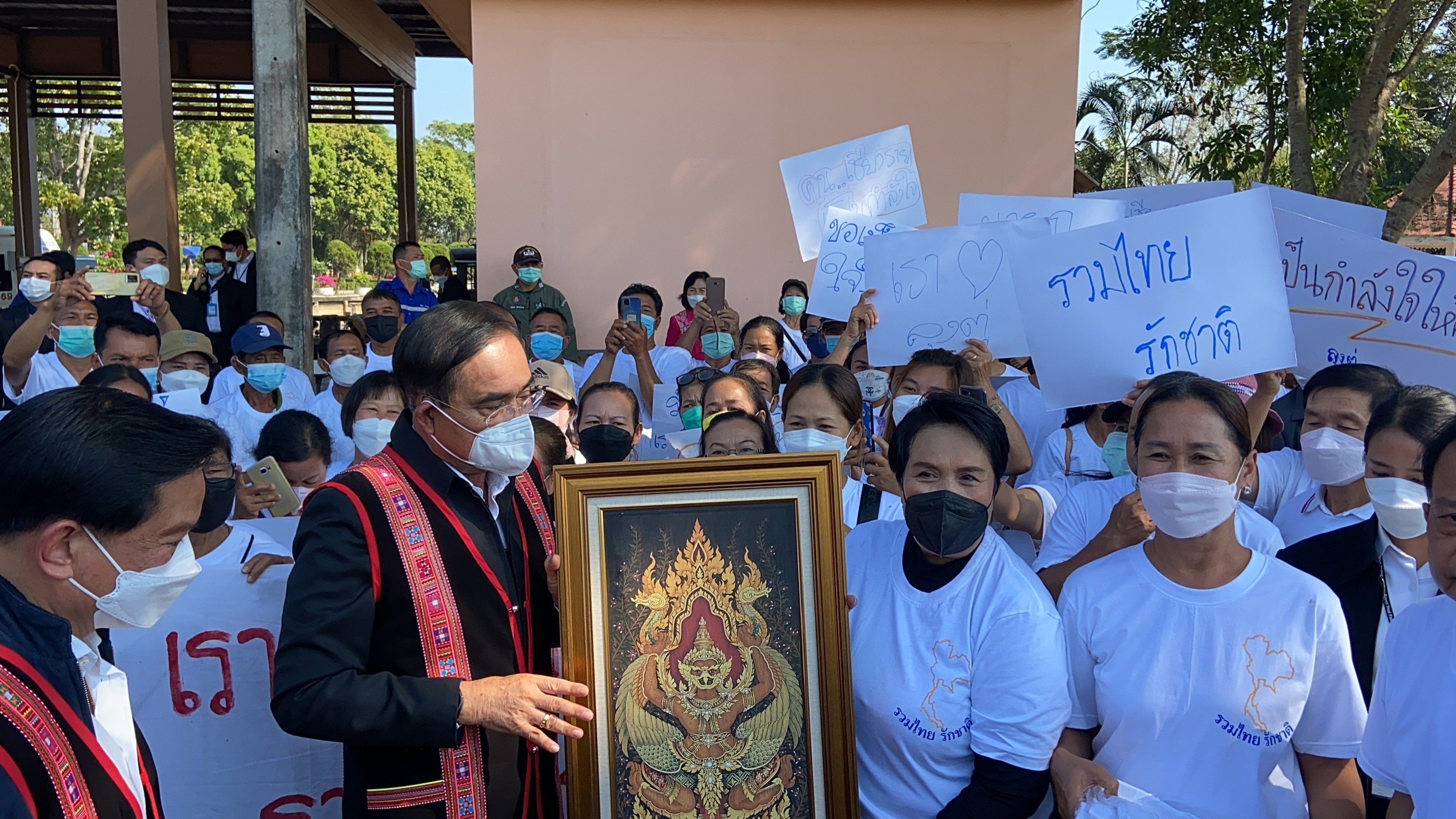 เชียงราย นายกฯ สวมชุดชาติพันธุ์ แจกเสื้อห้ามพูดการเมือง นักเคลื่อนไหวเชียงรายตะโกนไล่