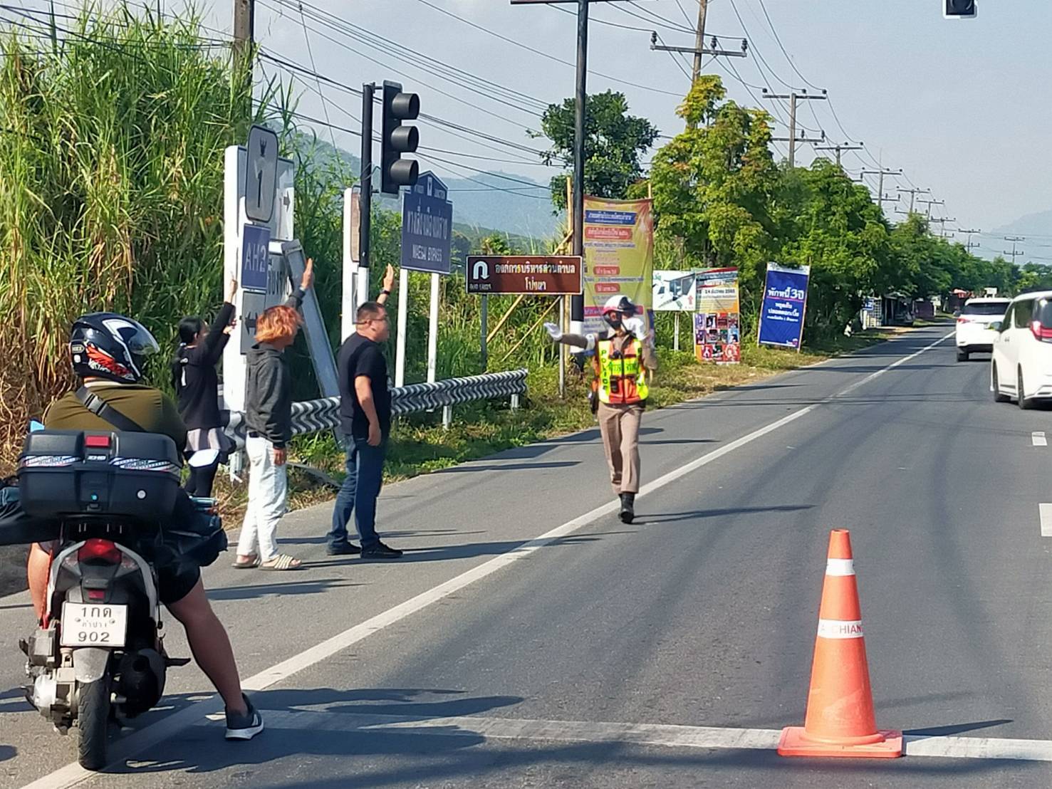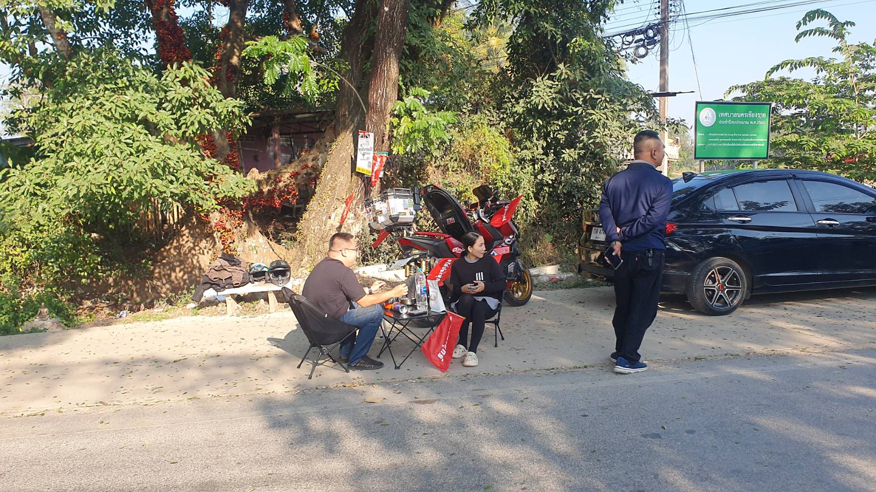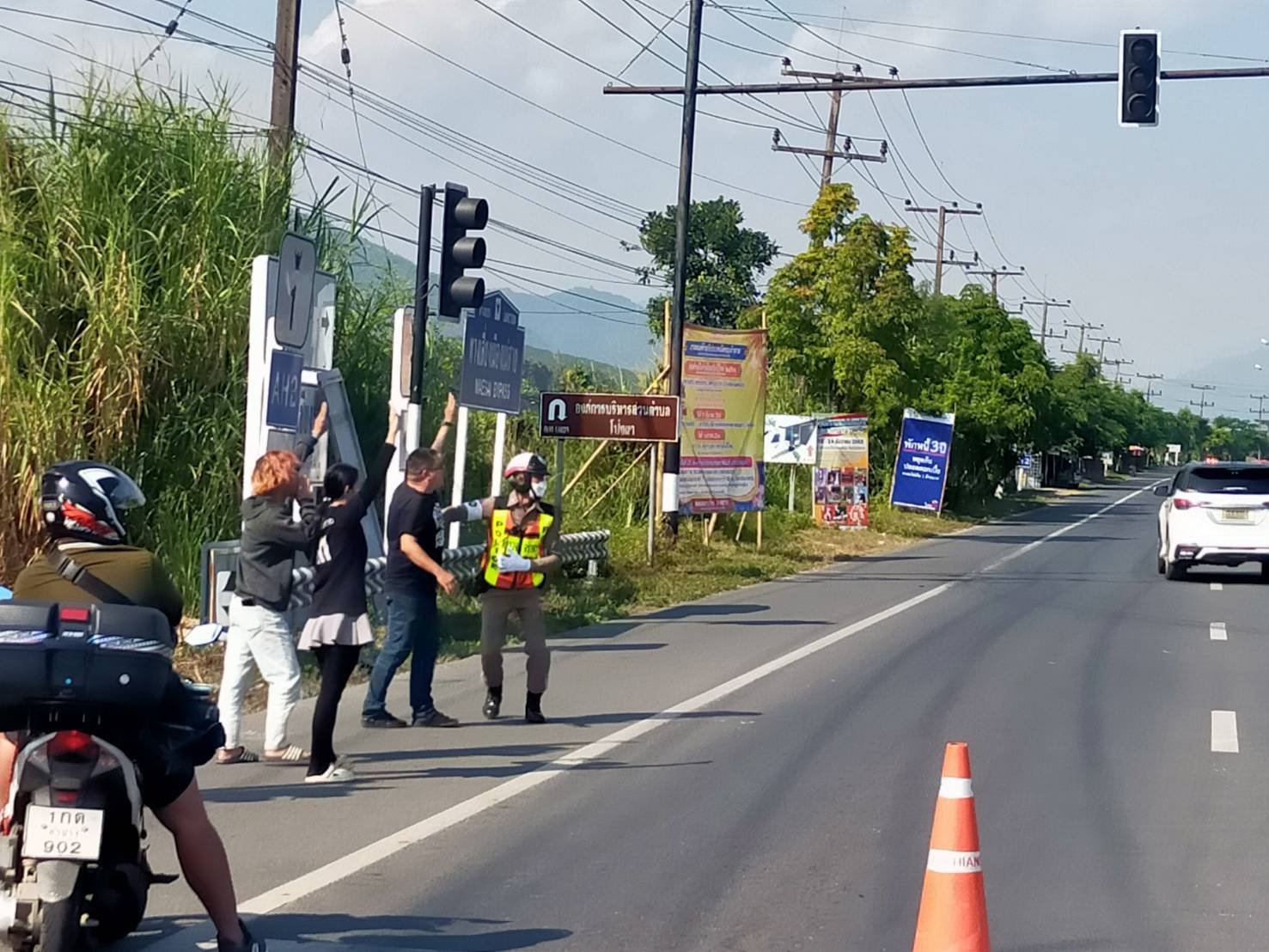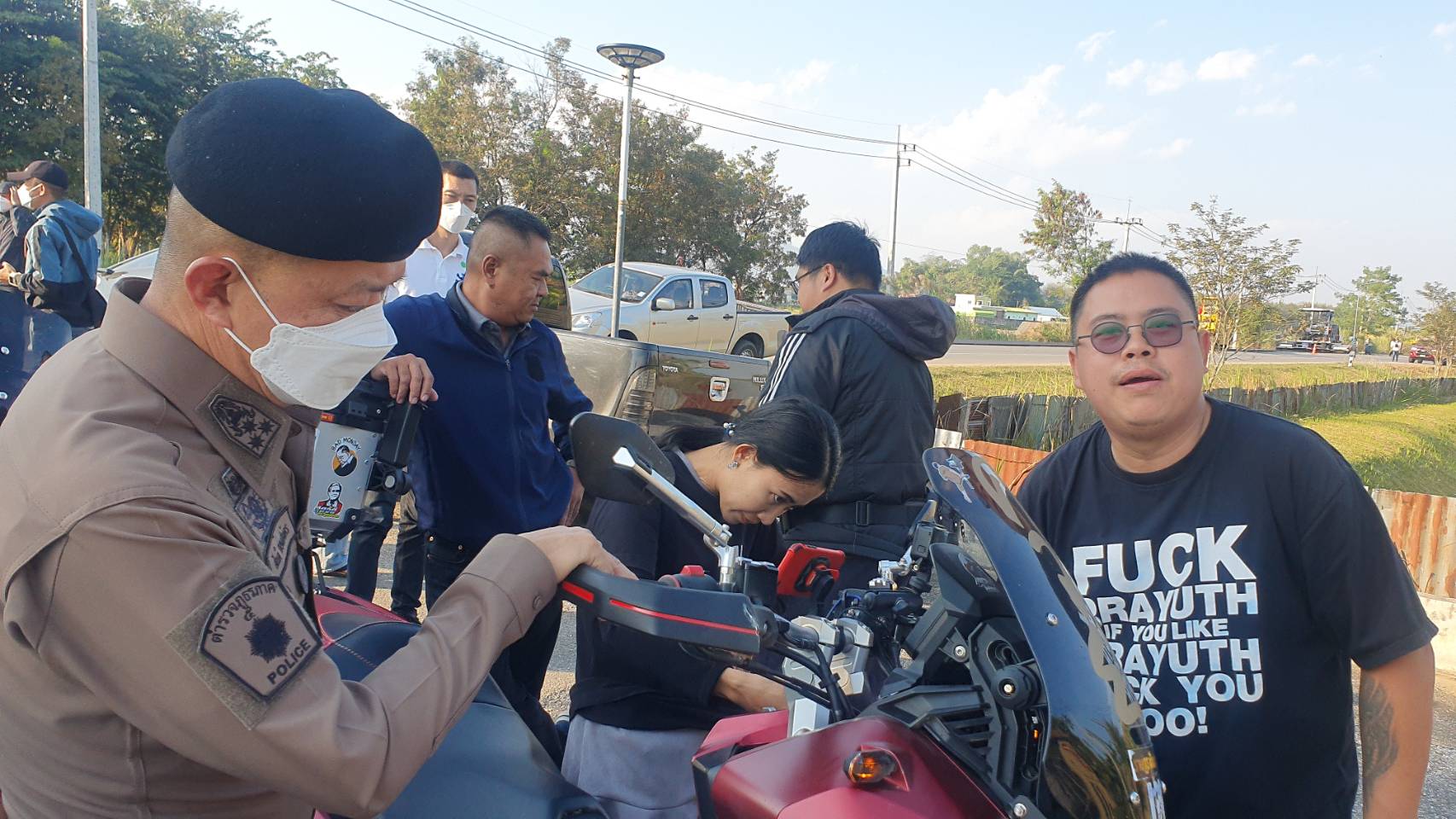 อย่างไรก็ตามระหว่างเดินทางกลุ่มผู้เคลื่อนไหวทางการเมืองนำโดยนายสราวุทธิ์ เซียนแว่น กุลมธุรพจน์ ไปยืนรอคณะที่เดินทางด้วยรถยนต์จาก สะพานมิตรภาพไทย-เมียนมาแห่งที่ 2 ผ่านแยกหน้าองค์การบริหารส่วนตำบลโป่งผา อ.แม่สาย เพื่อจะไปยังศูนยฝึกอบรมผาหมีโดยยืนชูสามนิ้วและตะโกนเรียกชื่อแต่รถของคณะก็ผ่านไปอยางรวดเร็ว