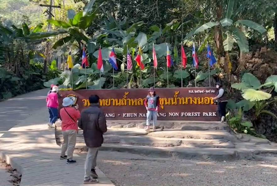วันที่ 22 ธ.ค. 65 ที่อุทยานแห่งชาติถ้ำหลวง-ขุนน้ำนางนอน ต.โป่งผา อ.แม่สาย จ.เชียงราย ยังมีนักท่องเที่ยวเดินทางมาเที่ยวชมอย่างไม่ขาดสาย เพื่อชมจุดที่เคยทำภารกิจช่วยเหลือ 13 ชีวิตทีมฟุตบอลหมูป่า ที่เด็กเข้าไปติดอยู่ภายในถ้ำหลวง ซึ่งชุดแรกติดได้ 16 วัน นำออกมาได้ 4 คน ชุดที่ 2 ติดได้ 17 วัน นำออกมาได้ 4 คน และชุดสุดท้ายติด 18 วัน นำออกมา 5 คน ซึ่งเป็นภารกิจที่คนทั่วประเทศ และต่างประเทศติดตามสถานการณ์ช่วยเหลือ 13 ชีวิตหมูป่าจนออกมาได้