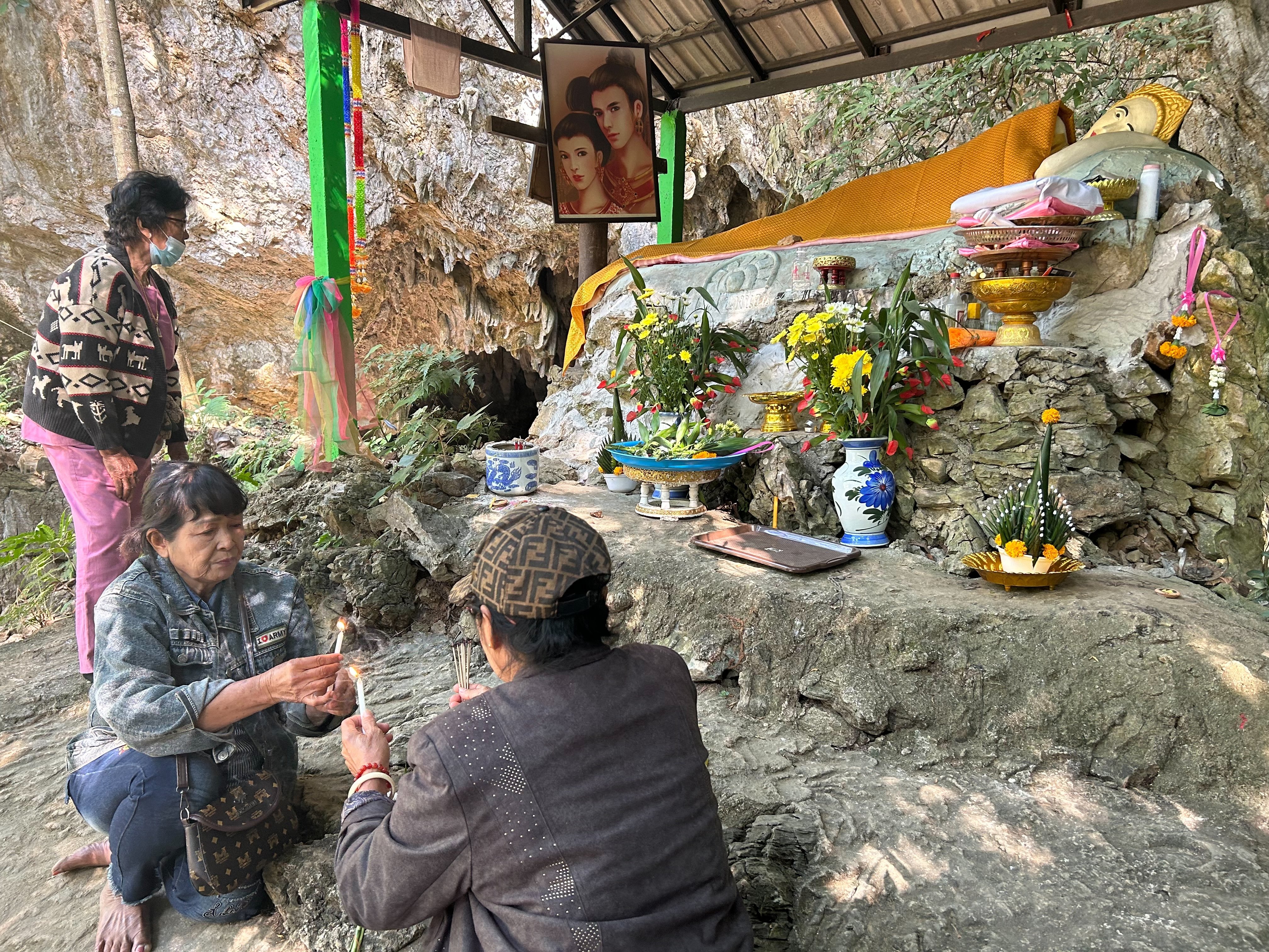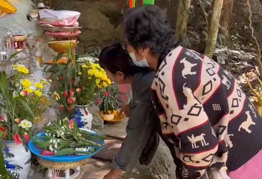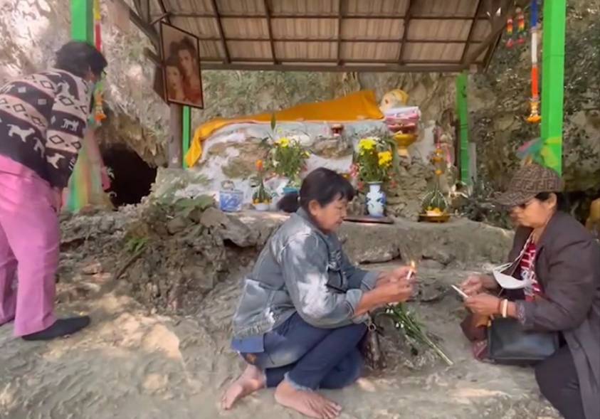 ผู้สื่อข่าวได้สอบถาม นายทองอิน โพธา เป็นผู้ขับรถบริการรับส่งนักท่องเที่ยว จากจุดจอดรถมาส่งบริเวณปากทางเข้าอุทยานแห่งชาติถ้ำหลวง-ขุนน้ำนางนอน เล่าว่า ตนเองขับรถรับส่งนักท่องเที่ยวมาที่ปากทางถ้ำหลวงมานานแล้ว ที่ผ่านมาตนเองเคยเห็นคนมาแก้บนหลายราย เพราะมาขอพรแล้วประสบความสำเร็จ บางรายก็มาขอหวย แล้วก็ไปซื้อก็ถูก จึงได้พากันมาแก้บน โดยบางรายก็นำการเอาไข่ไก่ หรือบางรายก็จะเอาหัวหมูมาแก้บน ตามที่แต่ละคนจะตั้งจิตอธิษฐานไว้